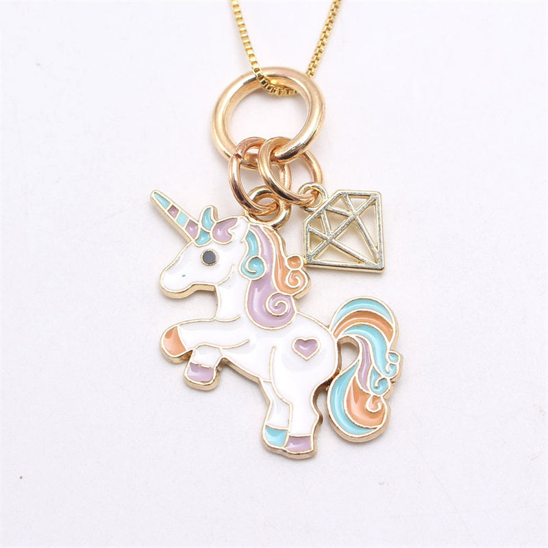 Kid Girl Unicorn Pattern Imitate crystal Children's Necklace Wholesale