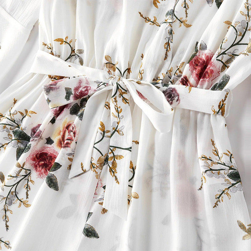 Floral Print V-neck Long Sleeve Jumpsuits For Mom and Me Wholesale