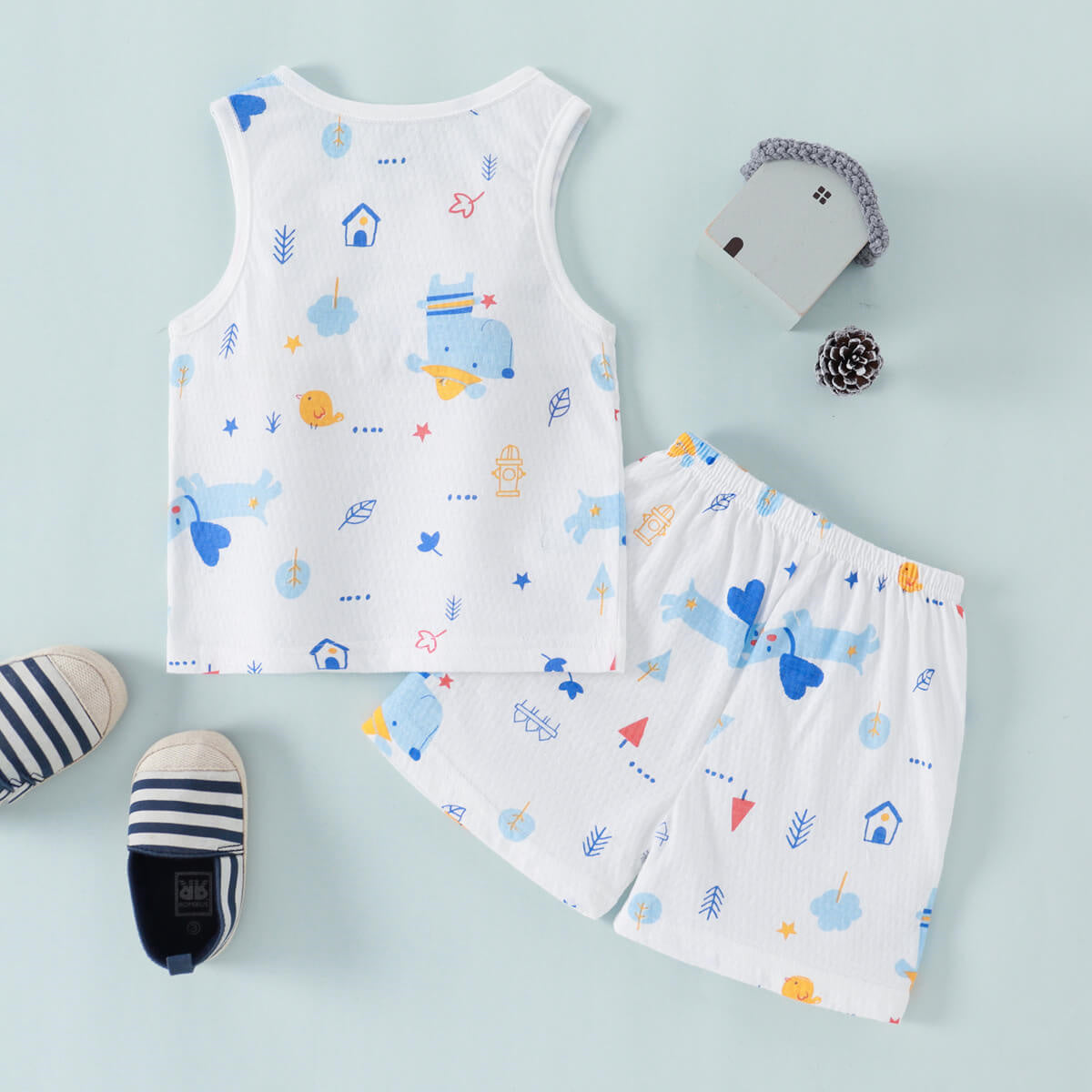 Toddler Boy Cotton Spandex Cartoon Animal Casual Tank Top And Shorts Two Piece Suit Wholesale
