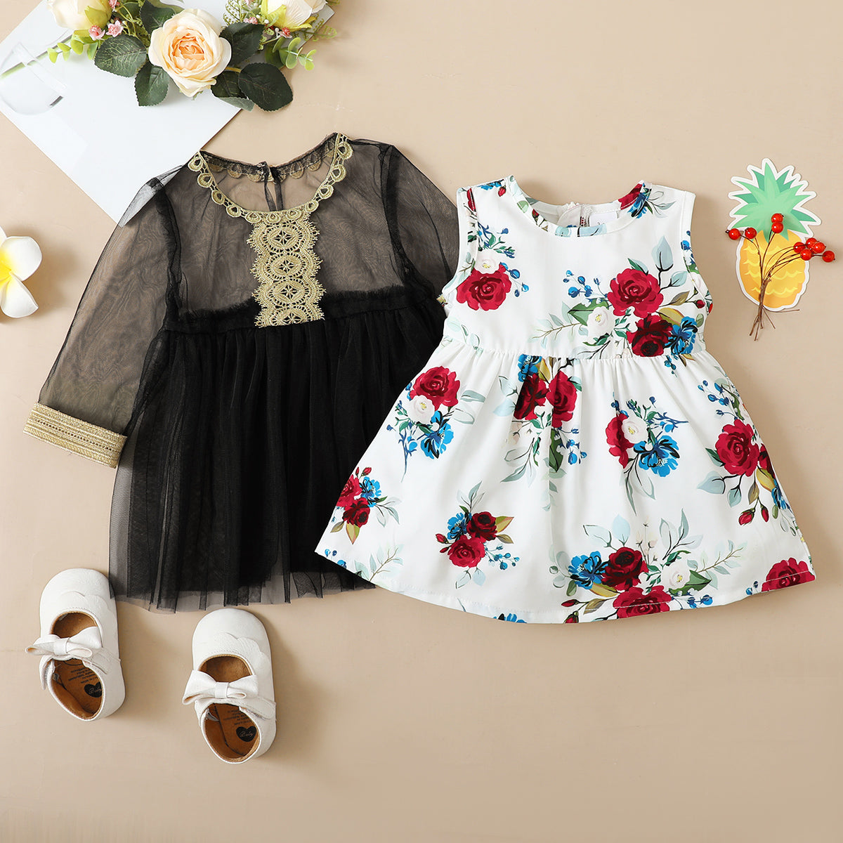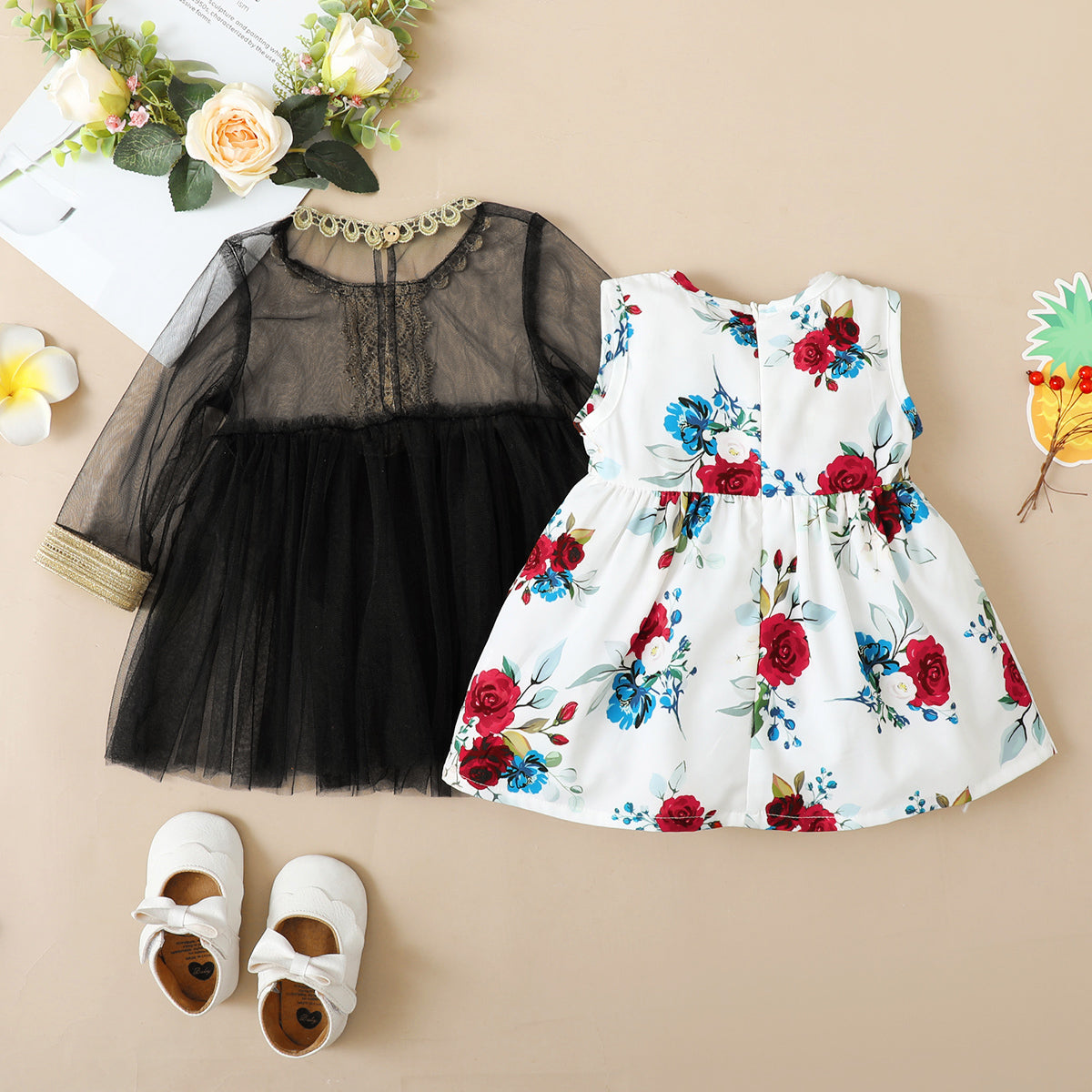 hibobi Baby Girl Long Sleeve Floral Mesh Dress Two-Piece Wholesale