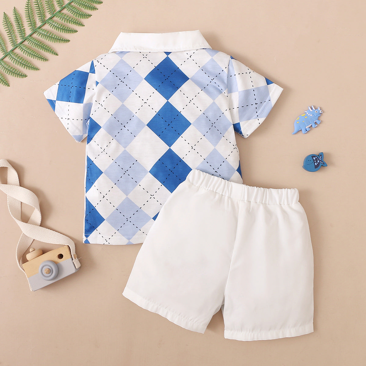 Toddler Boy Cotton Plaid Color-block Top & Shorts Wholesale