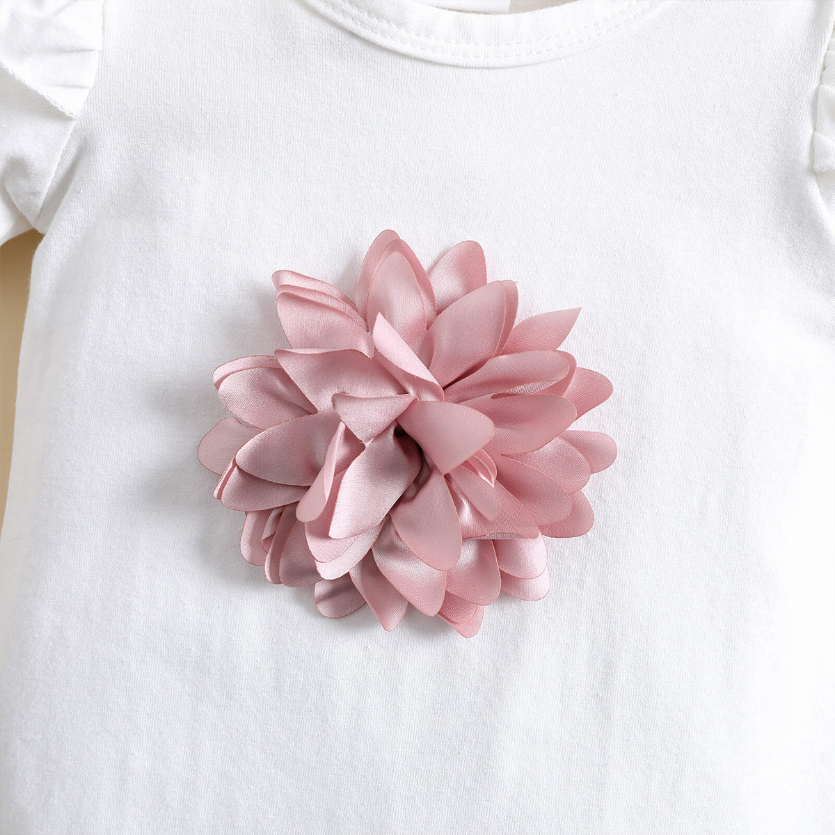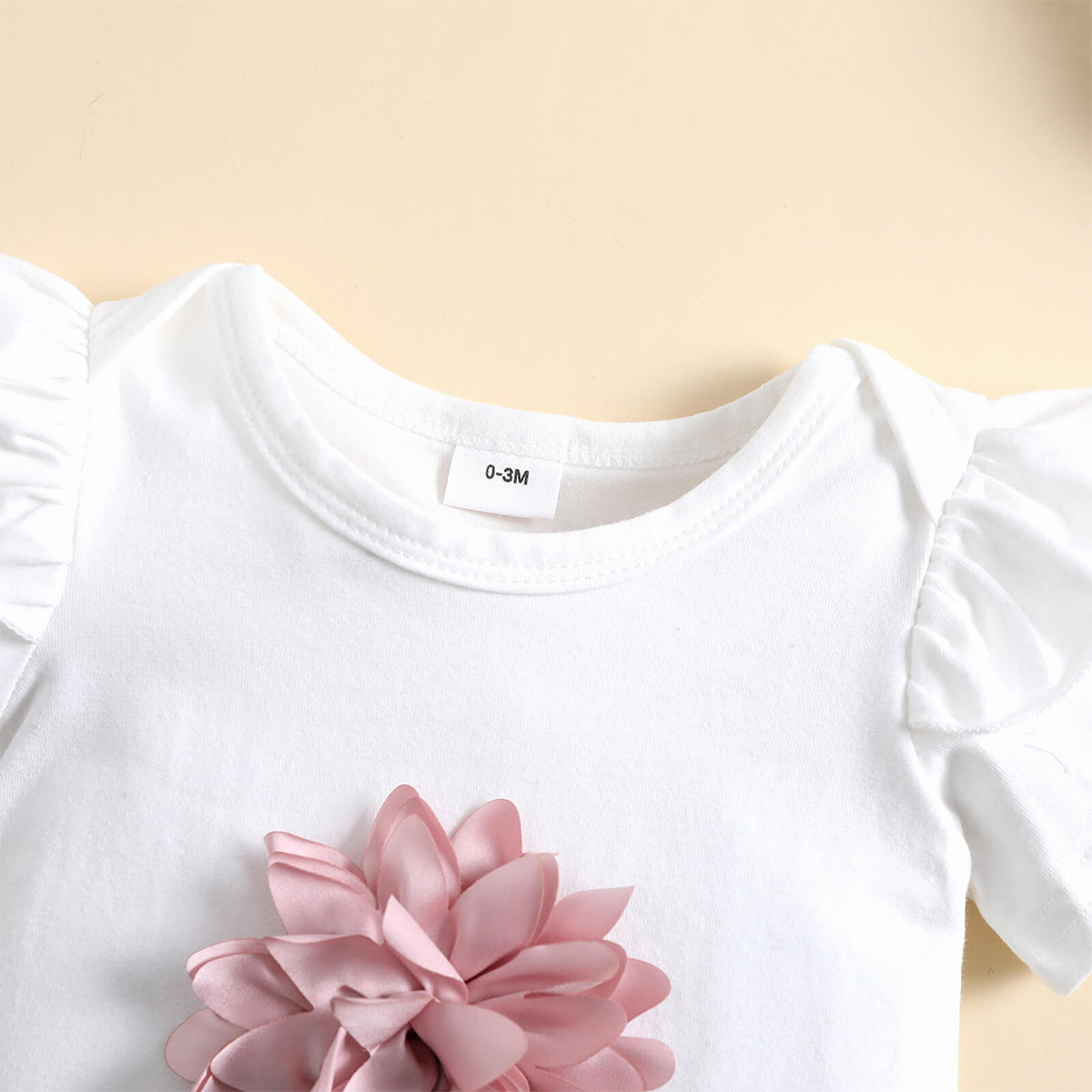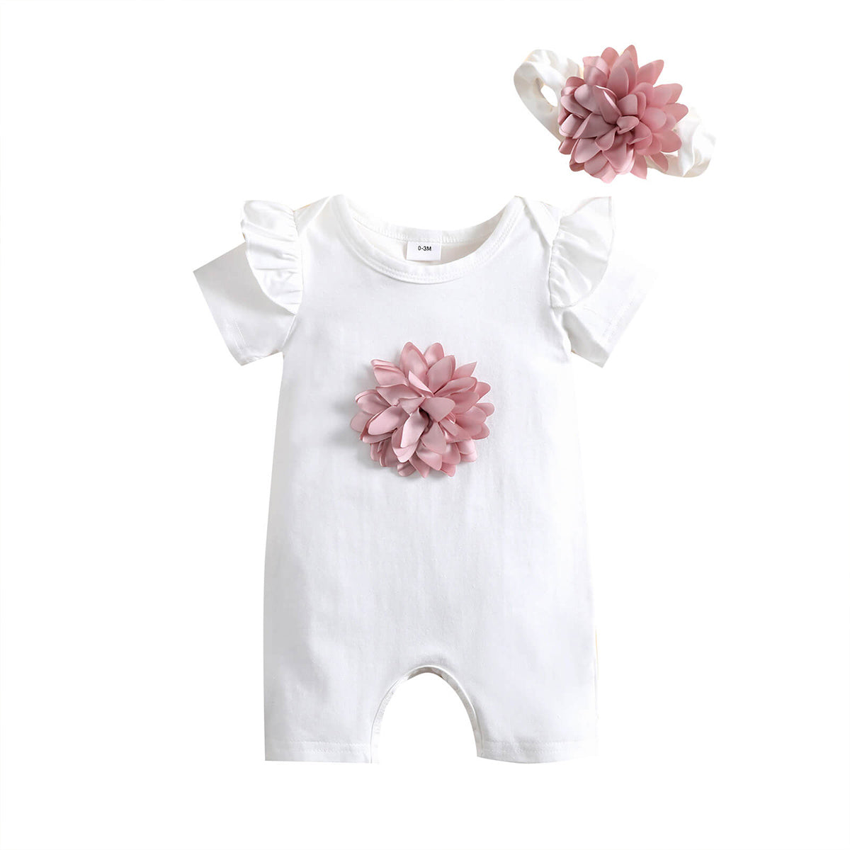 Baby Girl 2 Pieces 3-D Floral Pattern Decor Solid Ruffle-sleeve Romper & Headband Wholesale