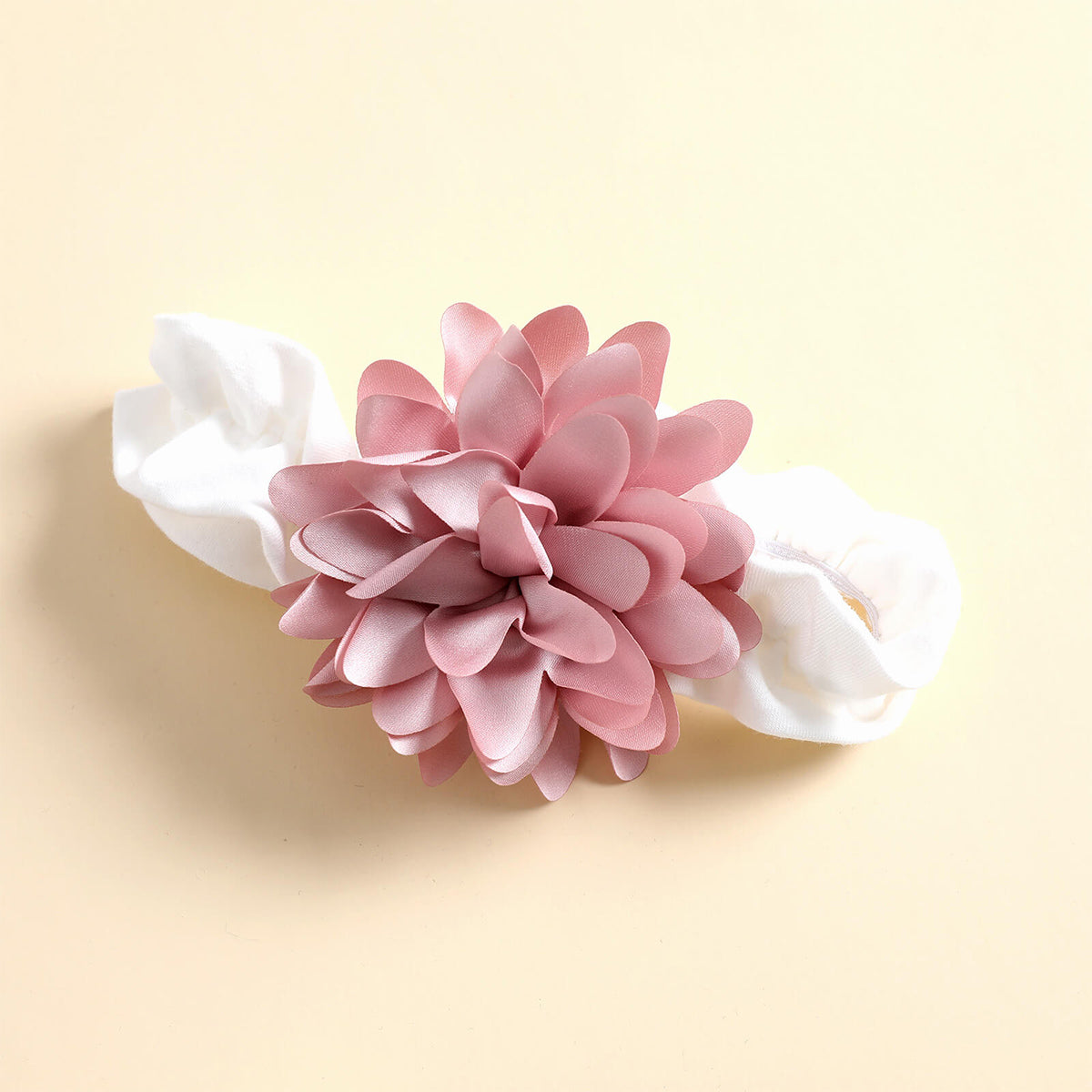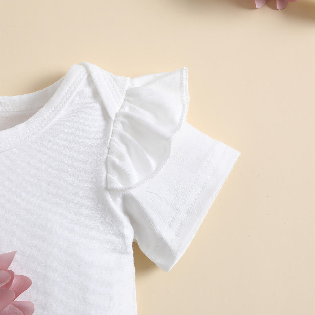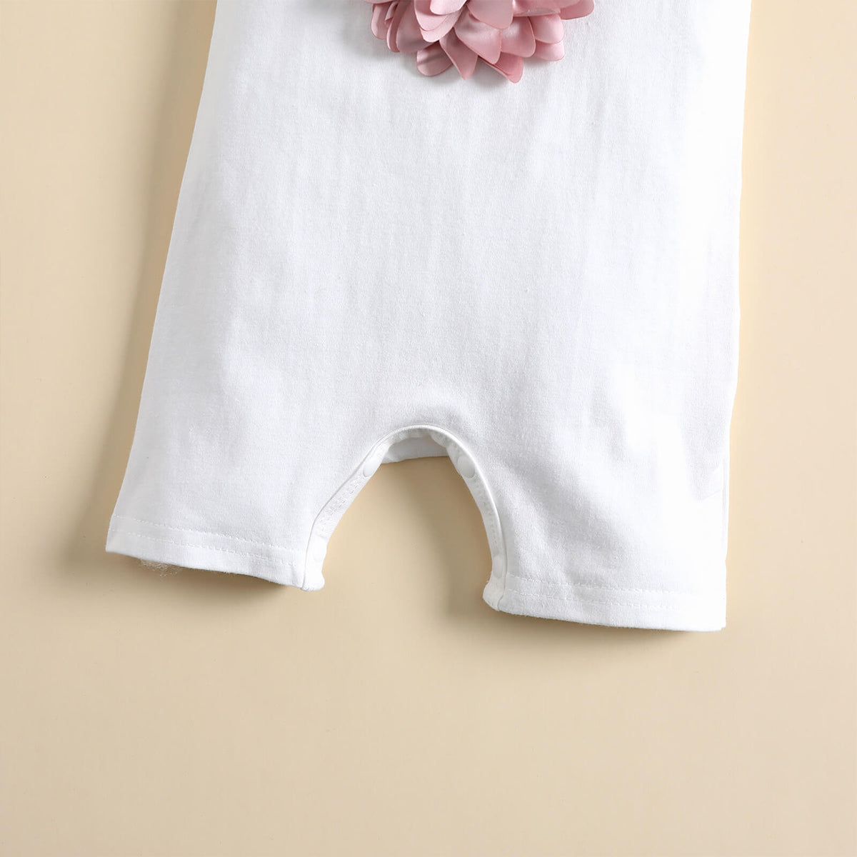 Baby Girl 2 Pieces 3-D Floral Pattern Decor Solid Ruffle-sleeve Romper & Headband Wholesale