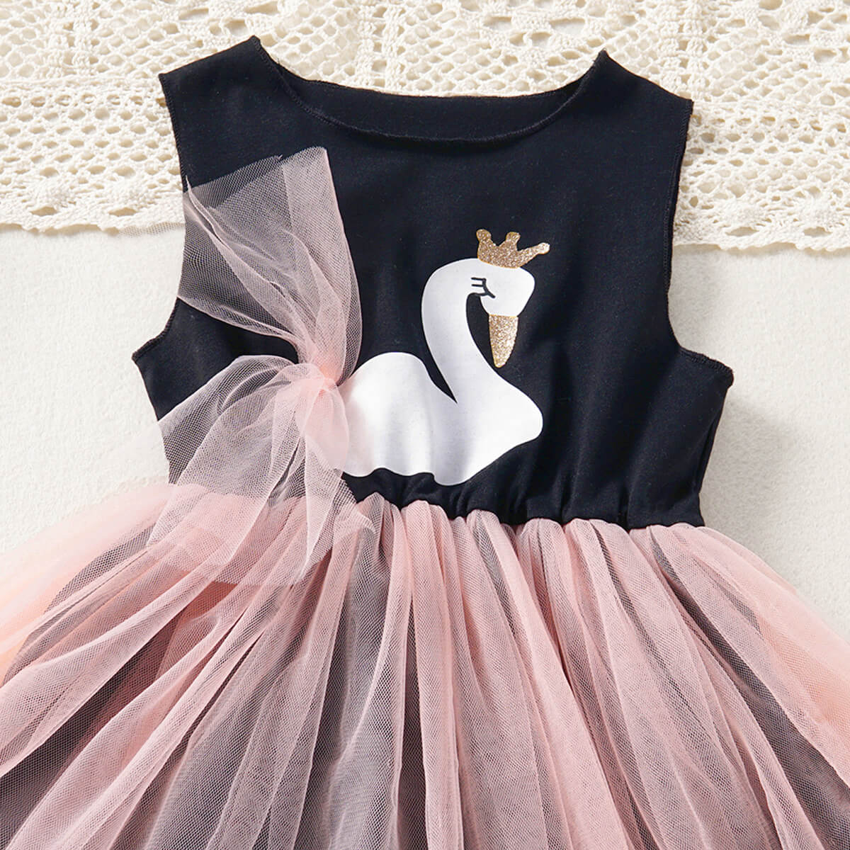 Toddler Girl Sweet Swan Pattern Dress Wholesale