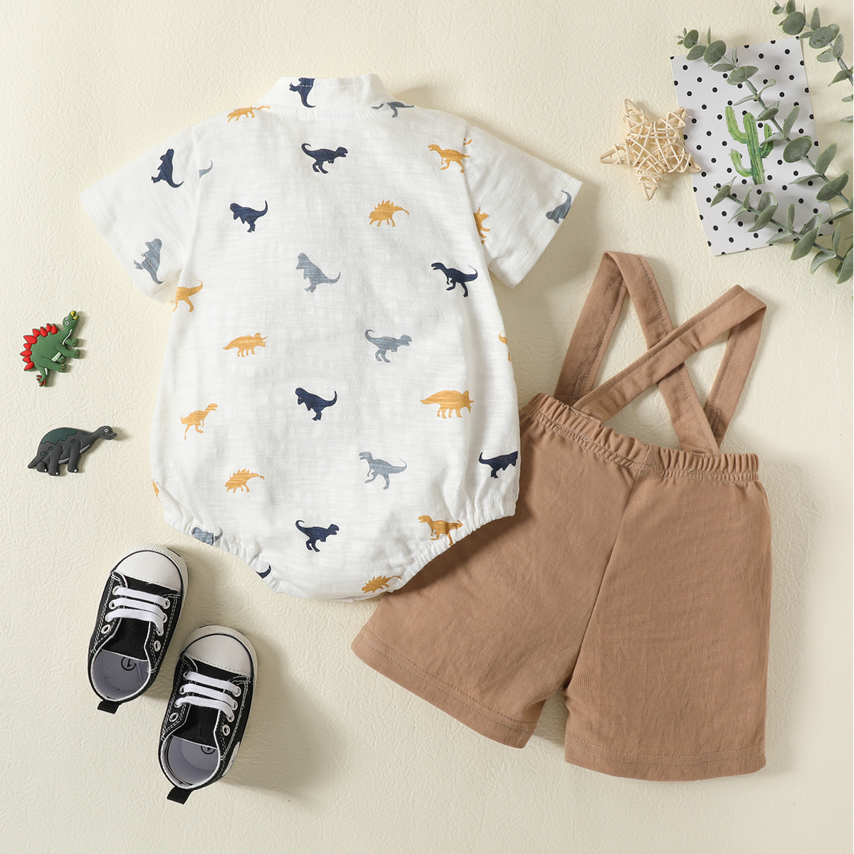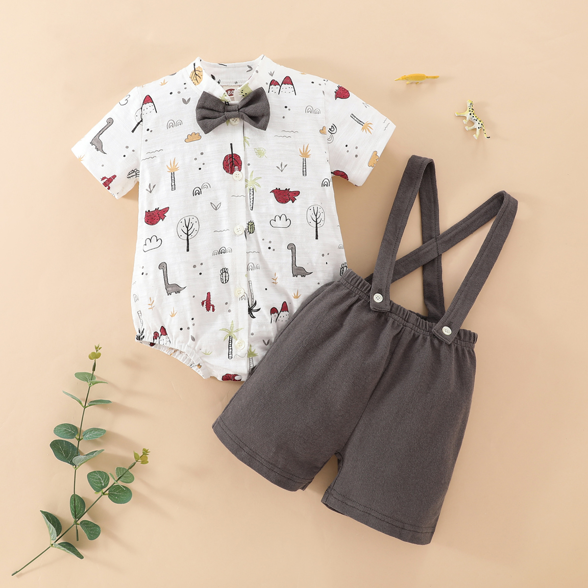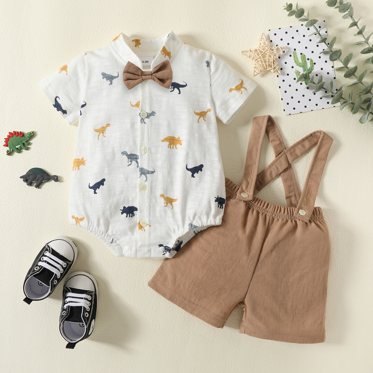 Baby Boy 3 Pieces Dinosaur Pattern Bodysuit & Suspender Shorts & Detachable Bow-tie Wholesale
