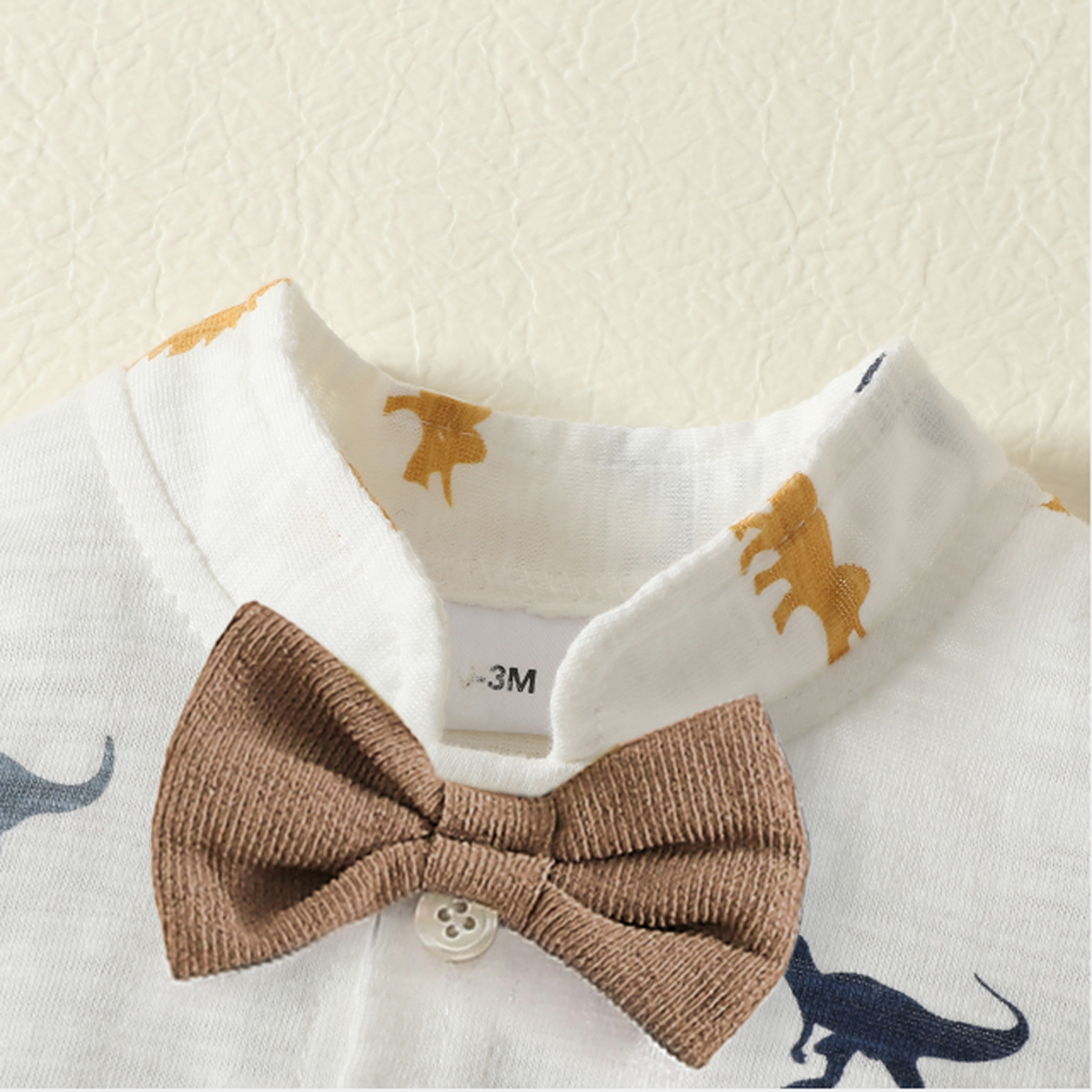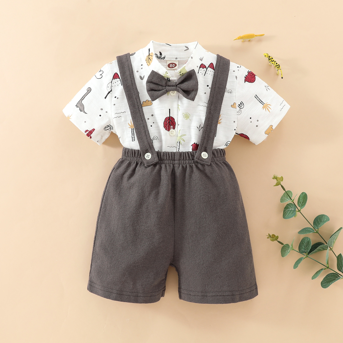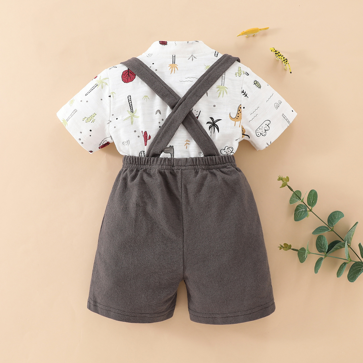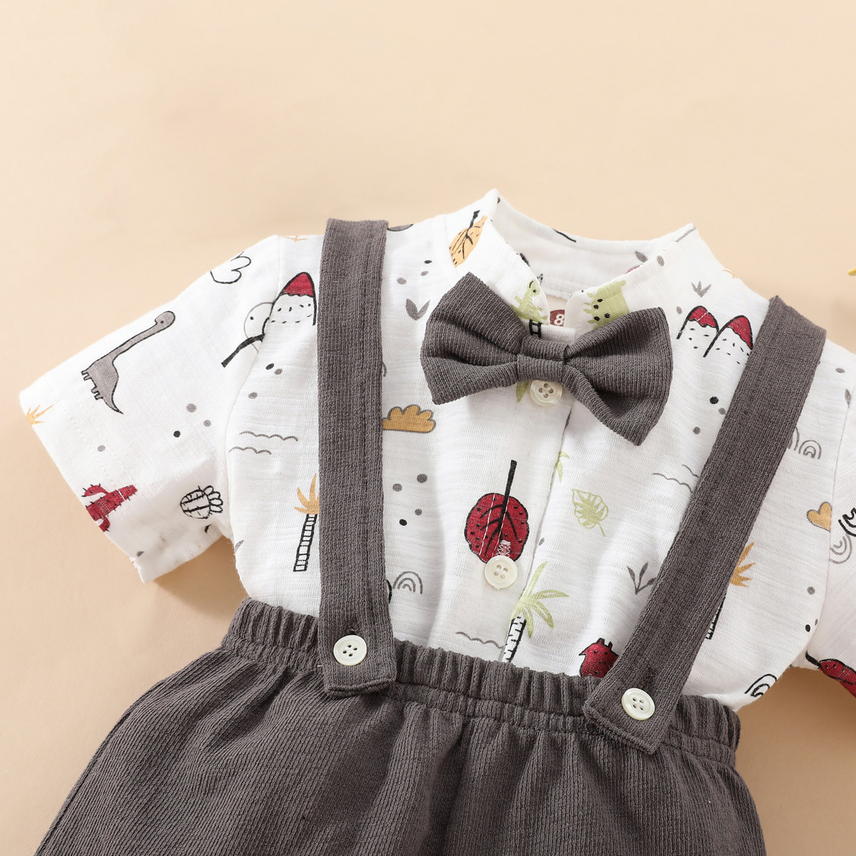 Baby Boy 3 Pieces Dinosaur Pattern Bodysuit & Suspender Shorts & Detachable Bow-tie Wholesale