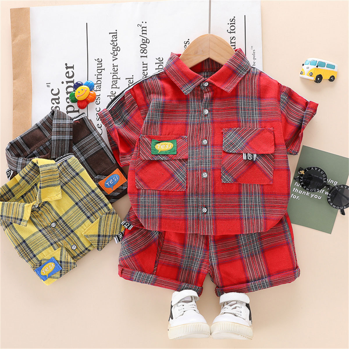 Baby Boy Big Pocket Plaid Shirt And Plaid Shorts Wholesale
