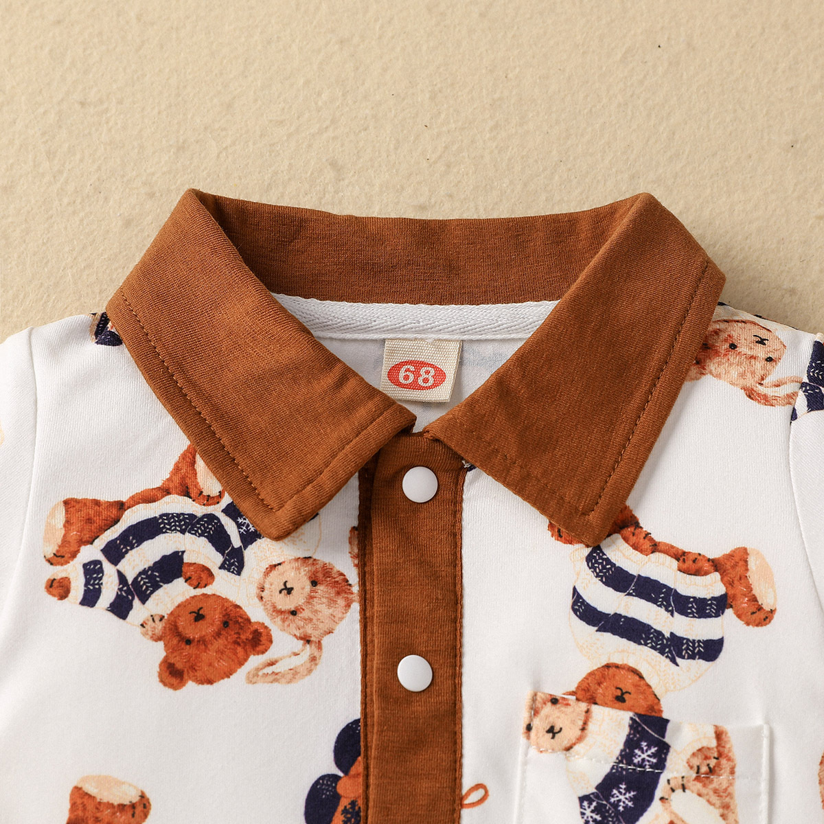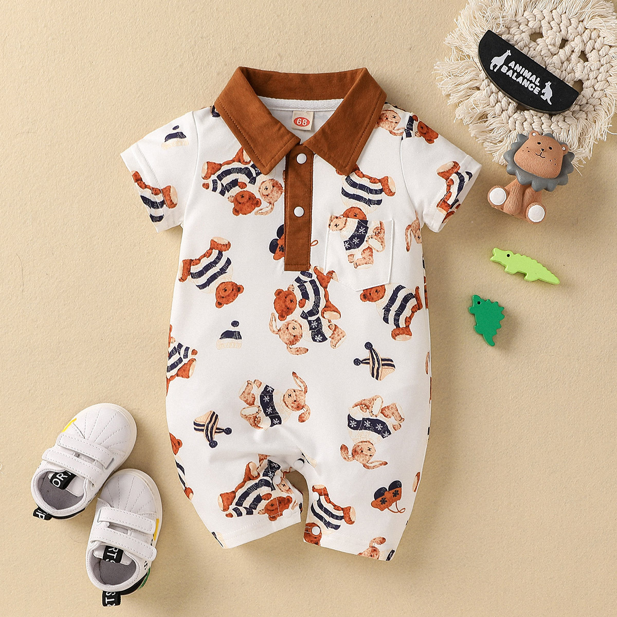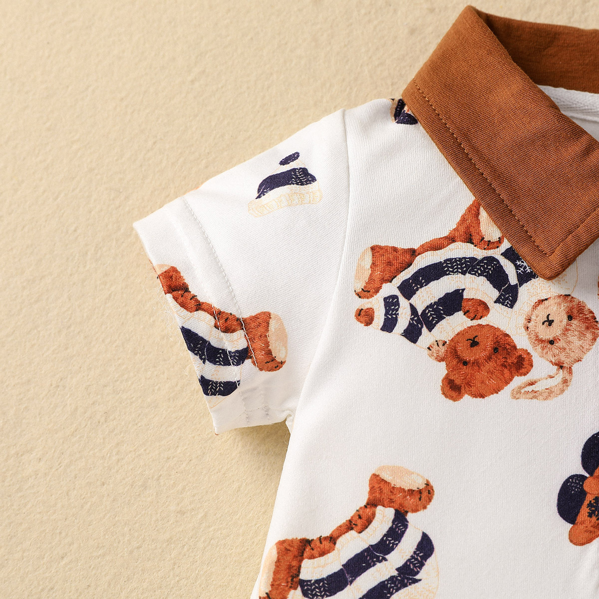 Baby Boy Color-block Animal Bear Pattern Polo-collar Romper Wholesale