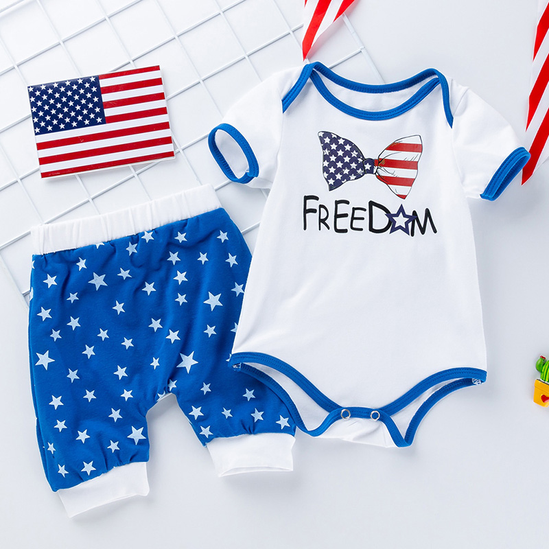 Baby Boy Independence Day Bow Pattern Letter Print Bodysuit & Star Print Shorts Wholesale