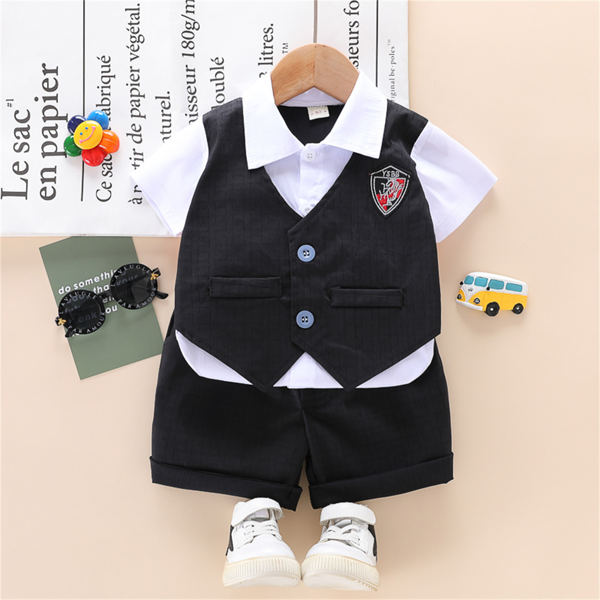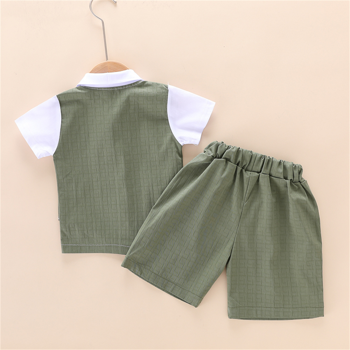 Baby Boy Preppy Fake two-piece Shirt And Solid Colour Shorts Wholesale