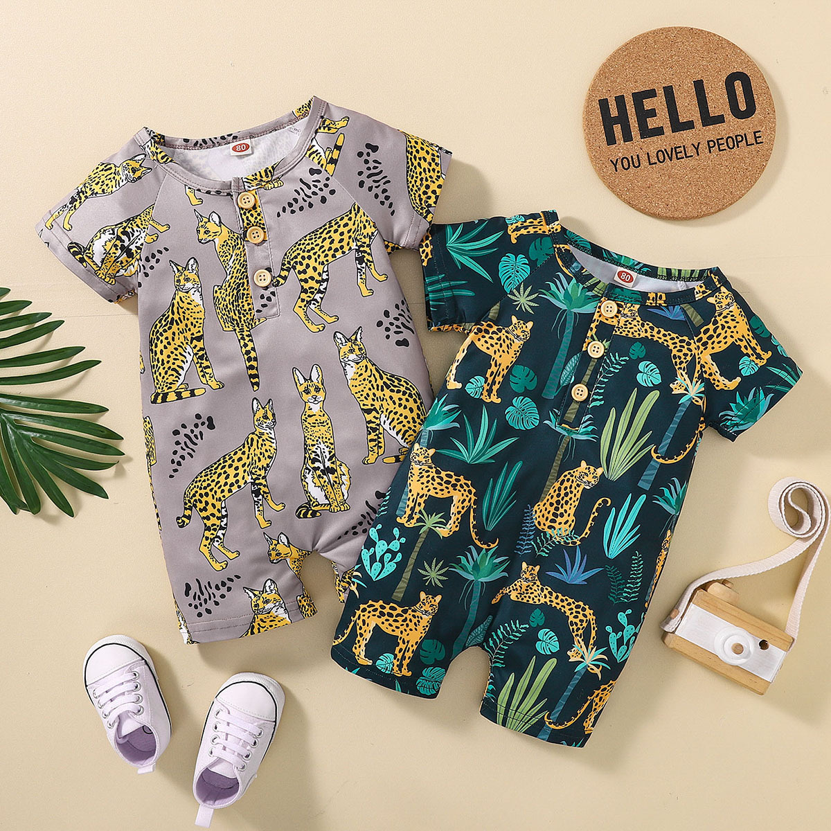 Baby Boy Short Sleeve Animal Print Front button Bodysuits Wholesale