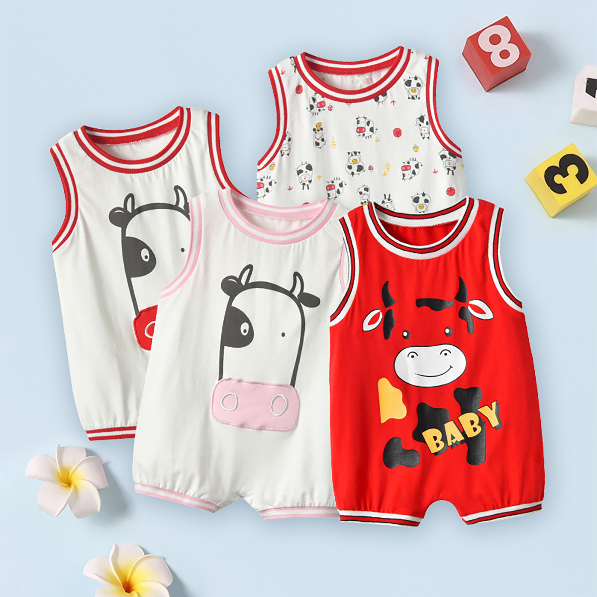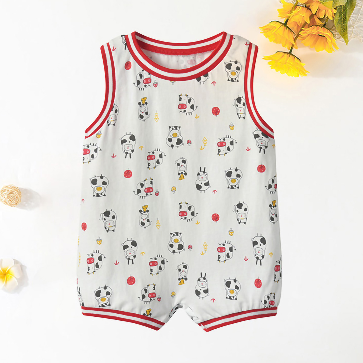 Baby Cute Cattle Print Sleeveless Bodysuit Wholesale
