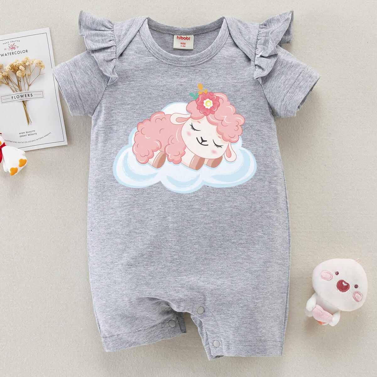 Baby Cute Sheep Print Short Sleeve Cotton Bodysuit Wholesale