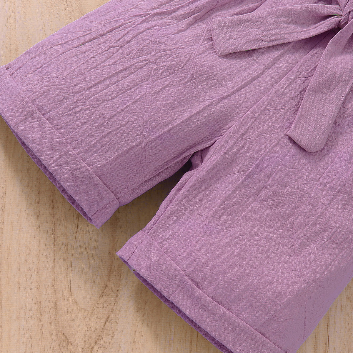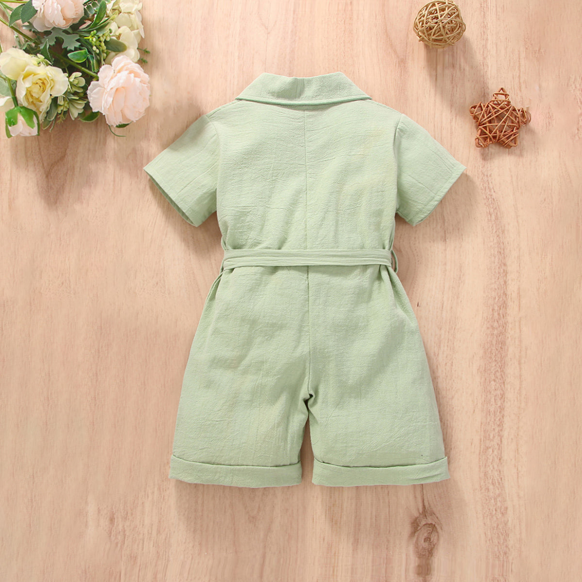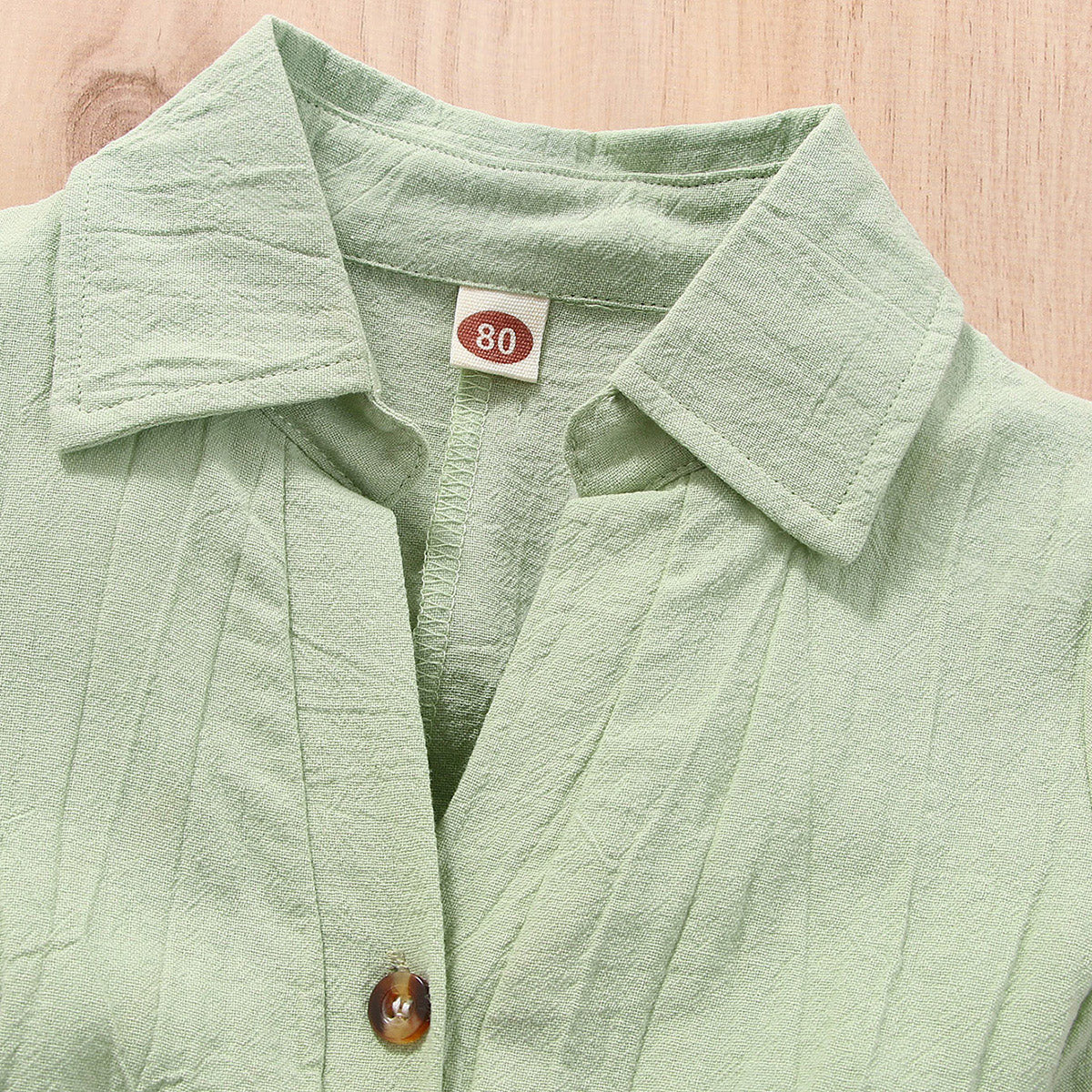 Baby Girl 2 Pieces Solid Color Shirt Collar Overalls & Waistband Wholesale