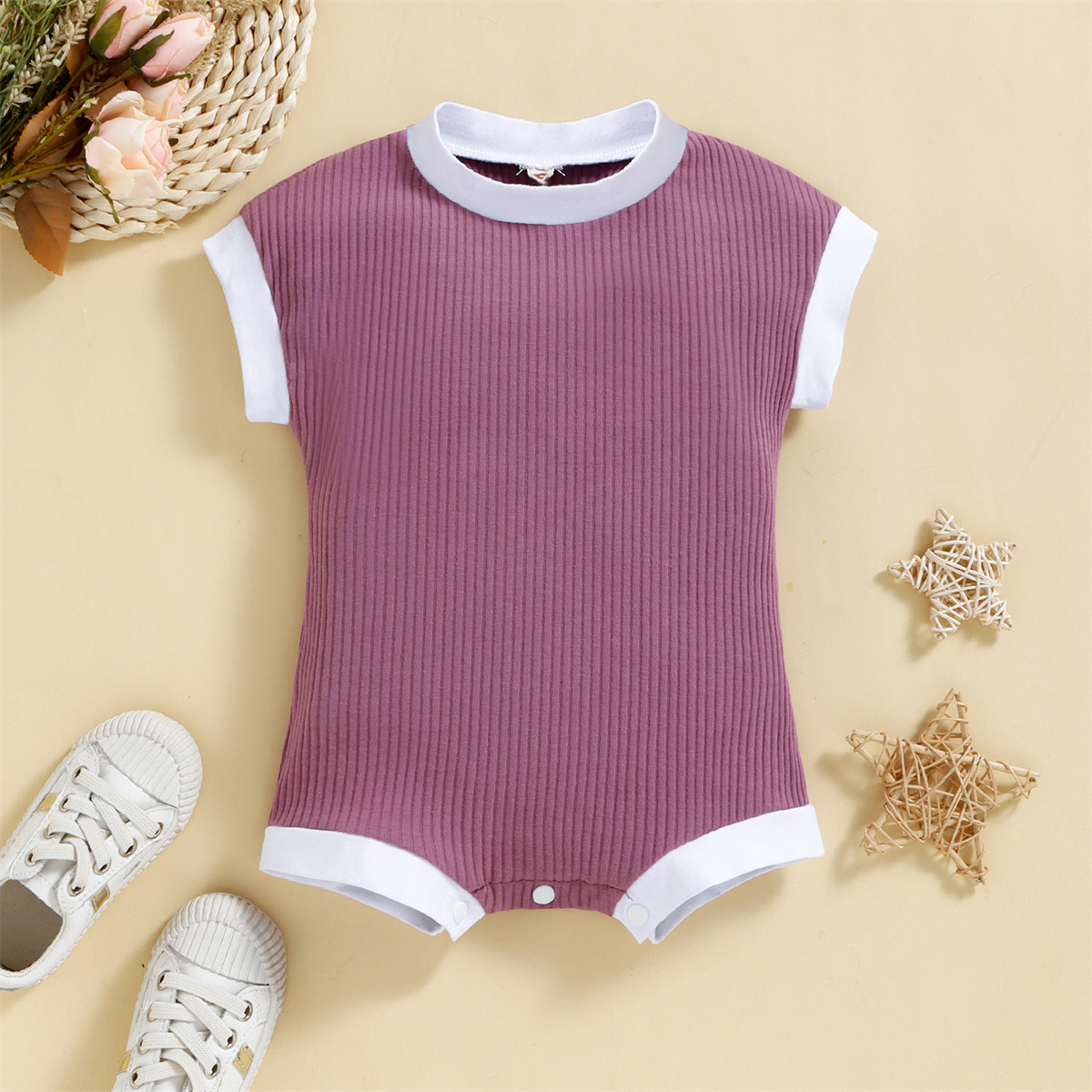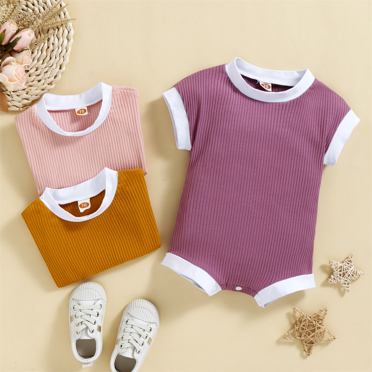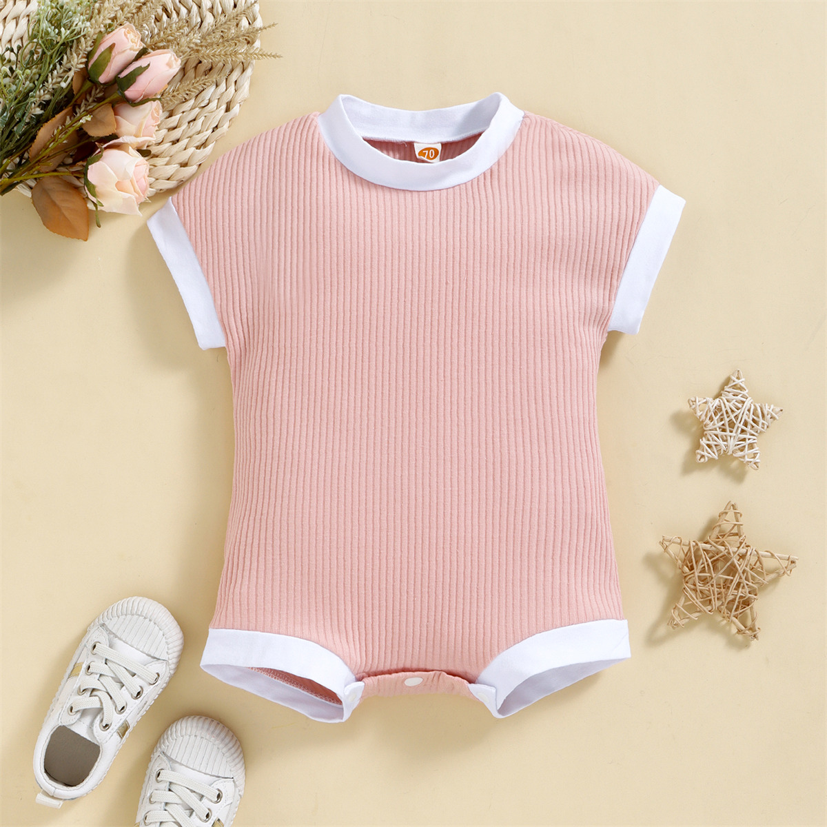 Baby Girl Basic Color-block Round Neck Bodysuit Wholesale