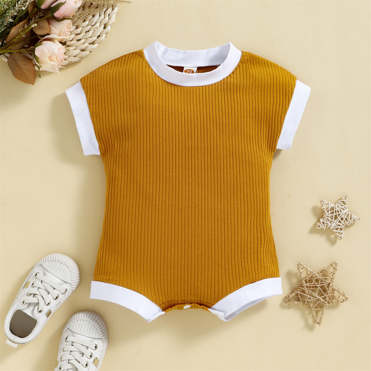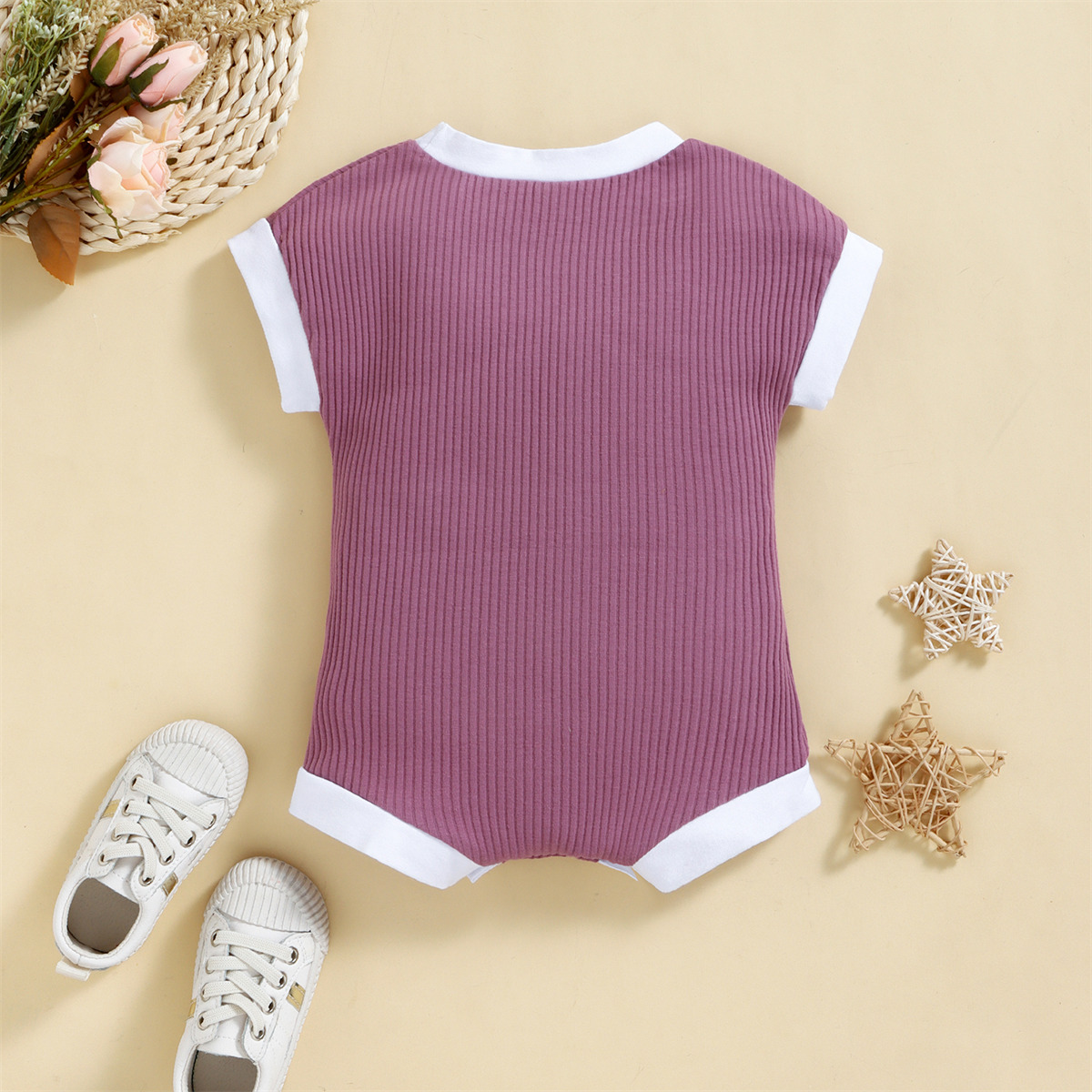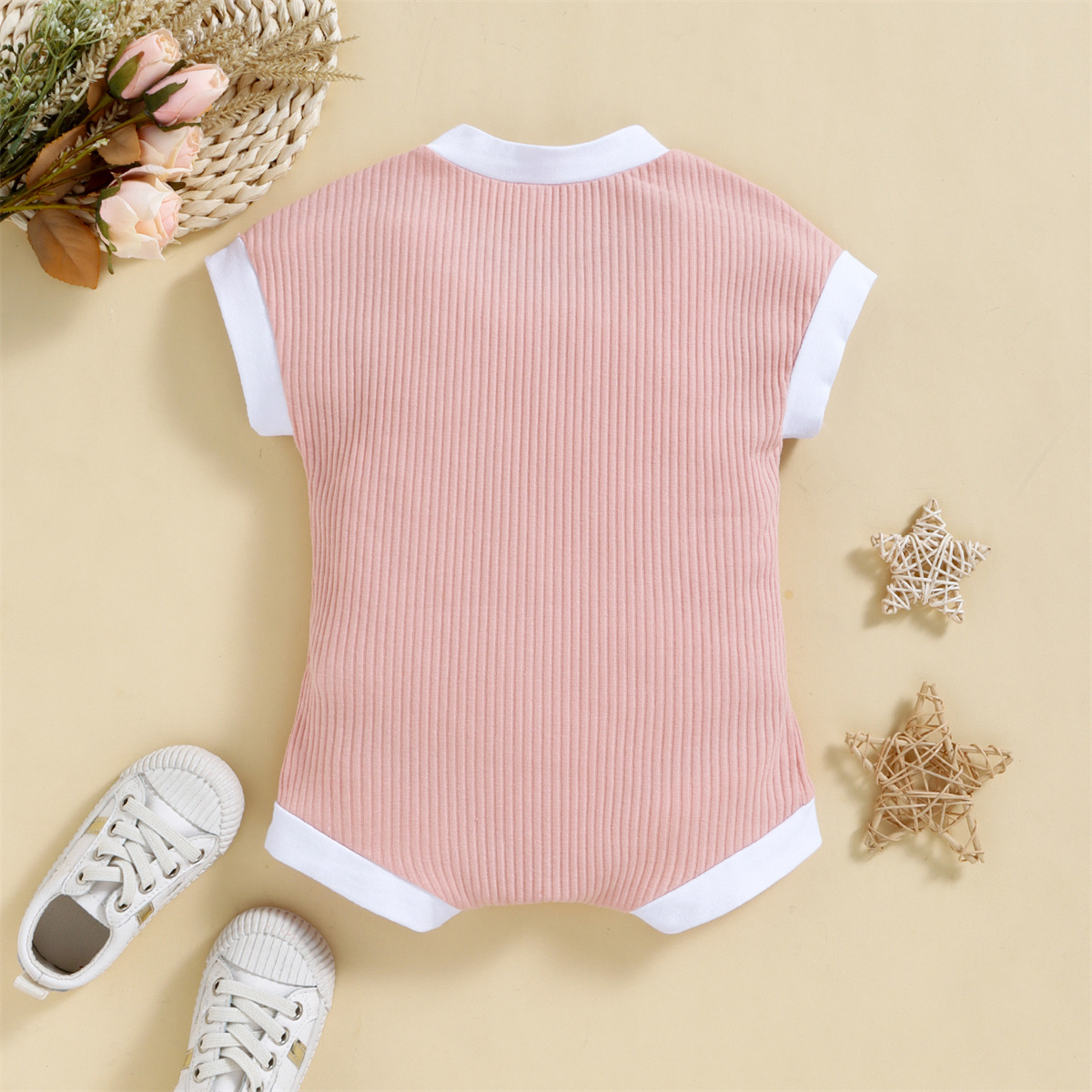 Baby Girl Basic Color-block Round Neck Bodysuit Wholesale