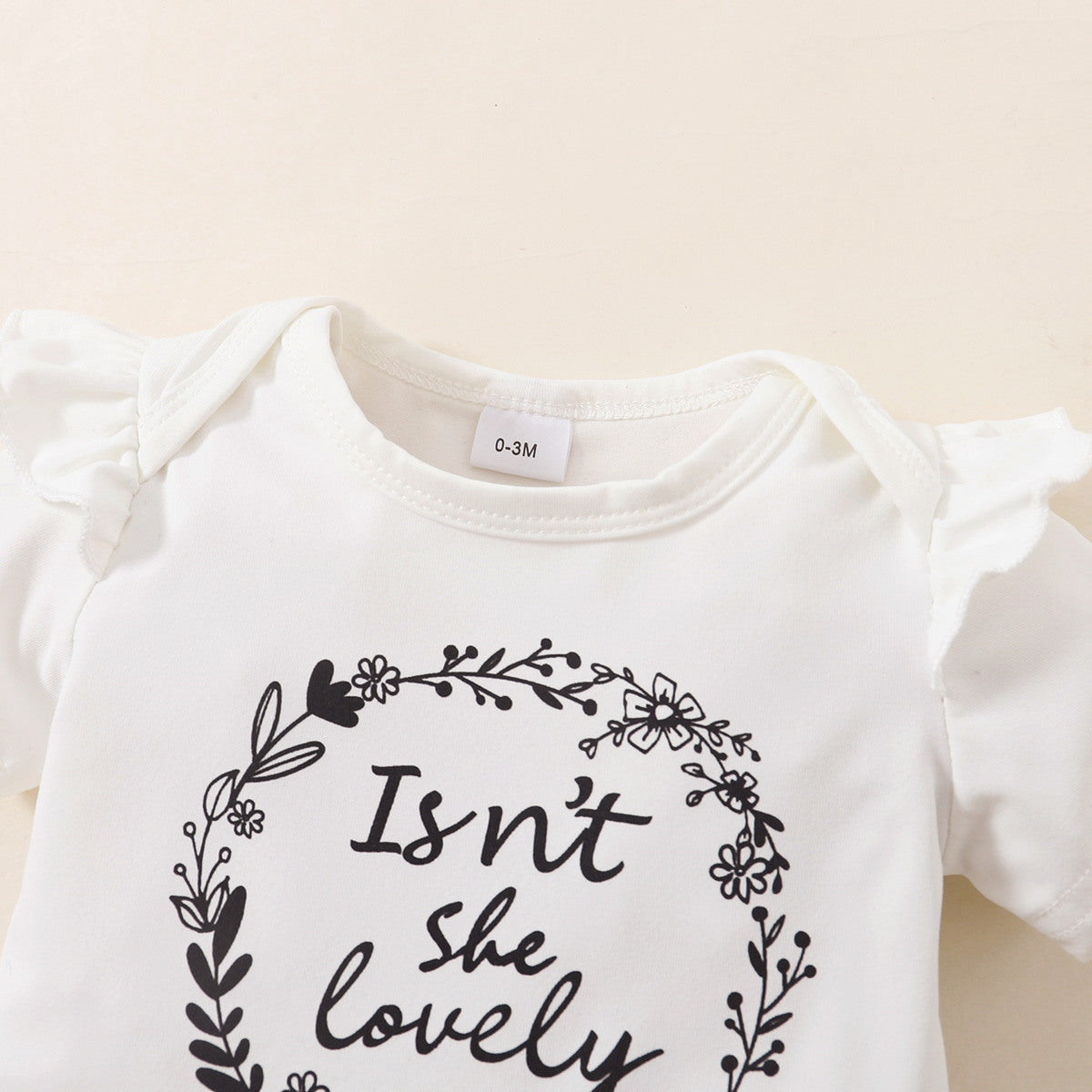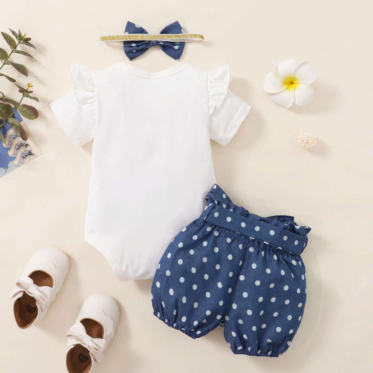 Baby Girl Floral Letter Pattern Bodysuit & Ruffle Decor Polka dot Shorts & Headband Wholesale