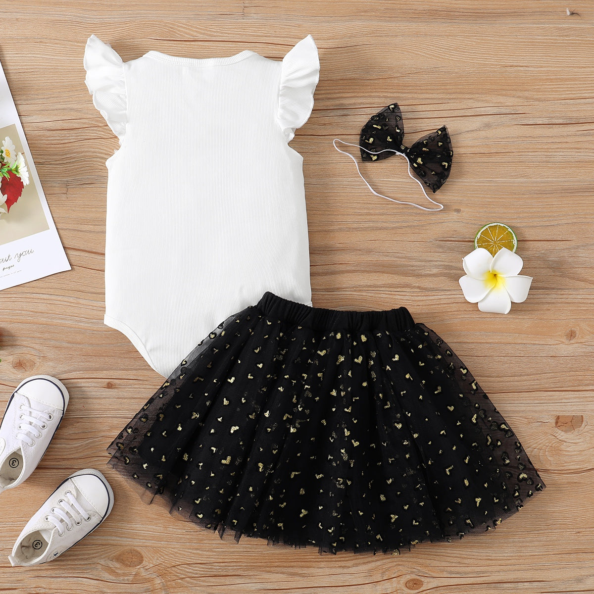 Baby Girl Mother's Day Letter Bodysuit And Mesh Skirt with Headband Wholesale