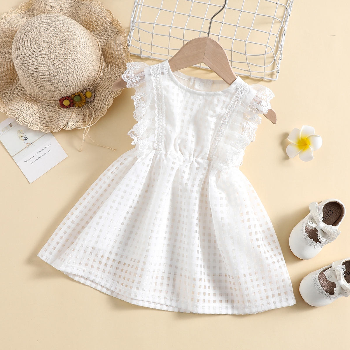 Baby Girl Organza Fabric Lace Decor Dress Wholesale