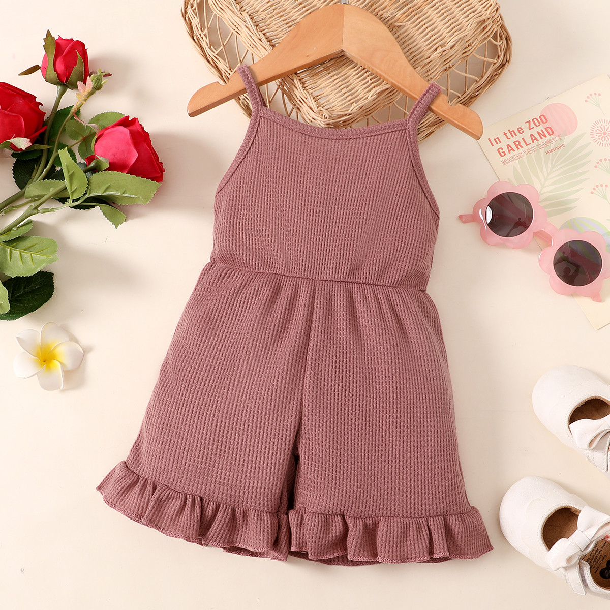 Baby Girl Solid Color Ruffle Shorts Overalls Wholesale