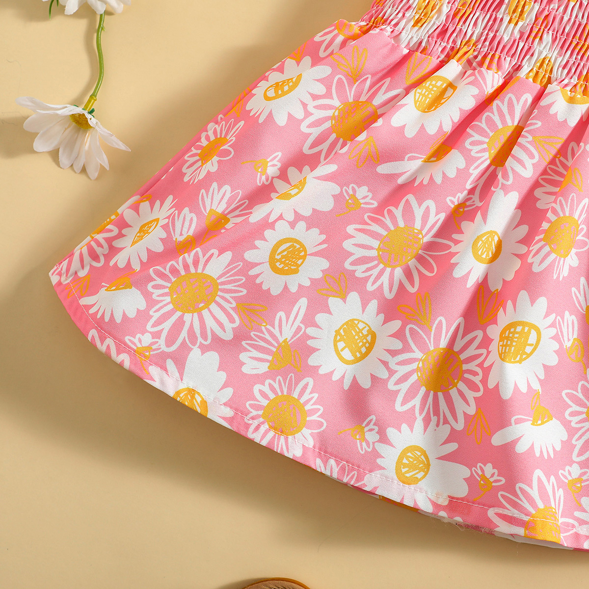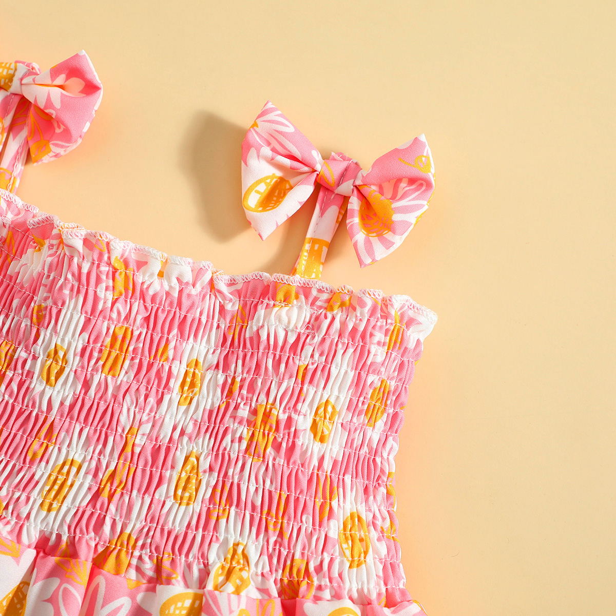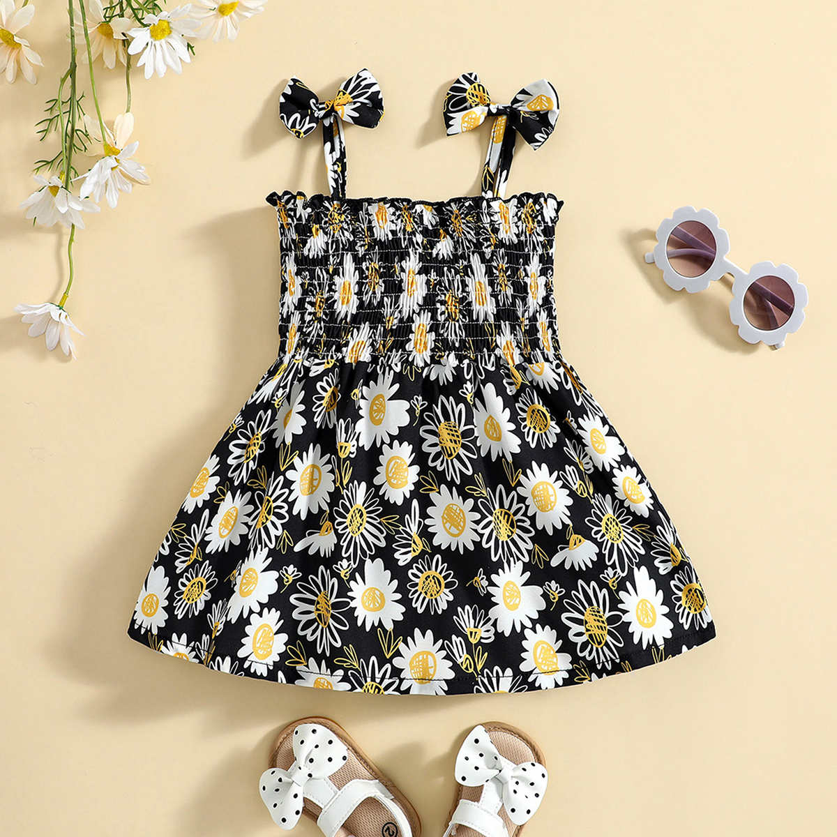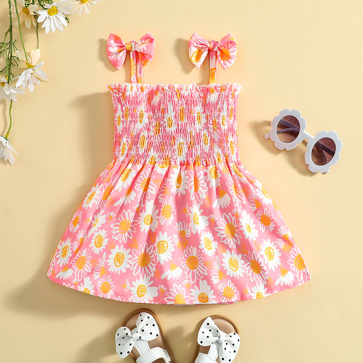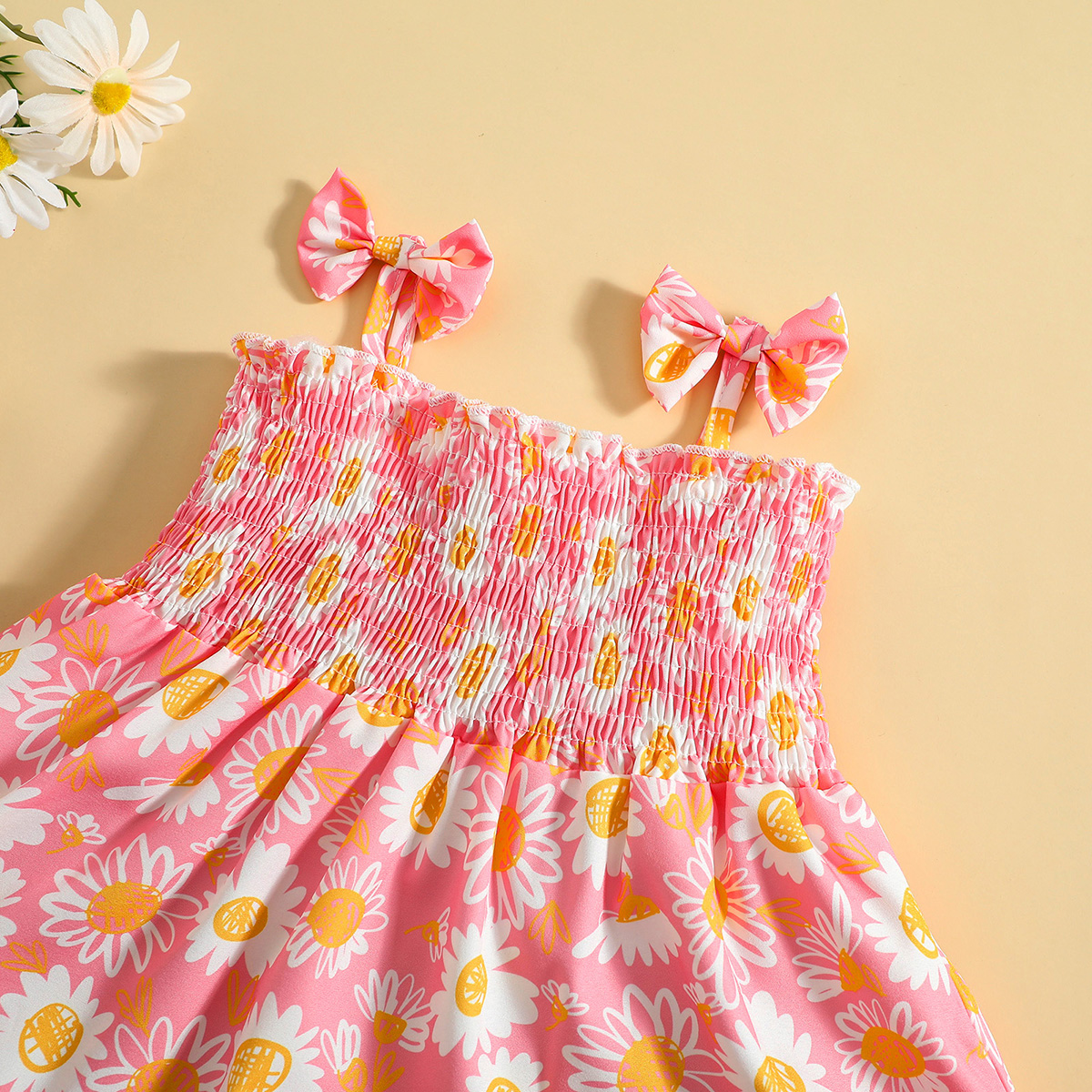 Baby Girl Sweet Floral Print Bowknot Sling Dress Wholesale