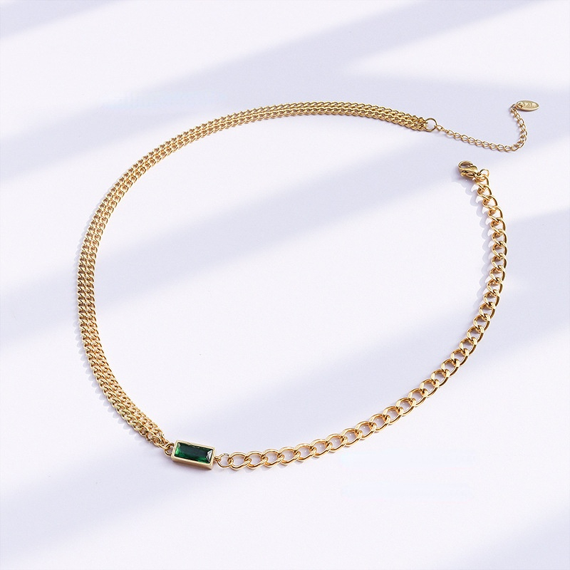 Double Layer Curb Chain Splicing Gemstone Necklace