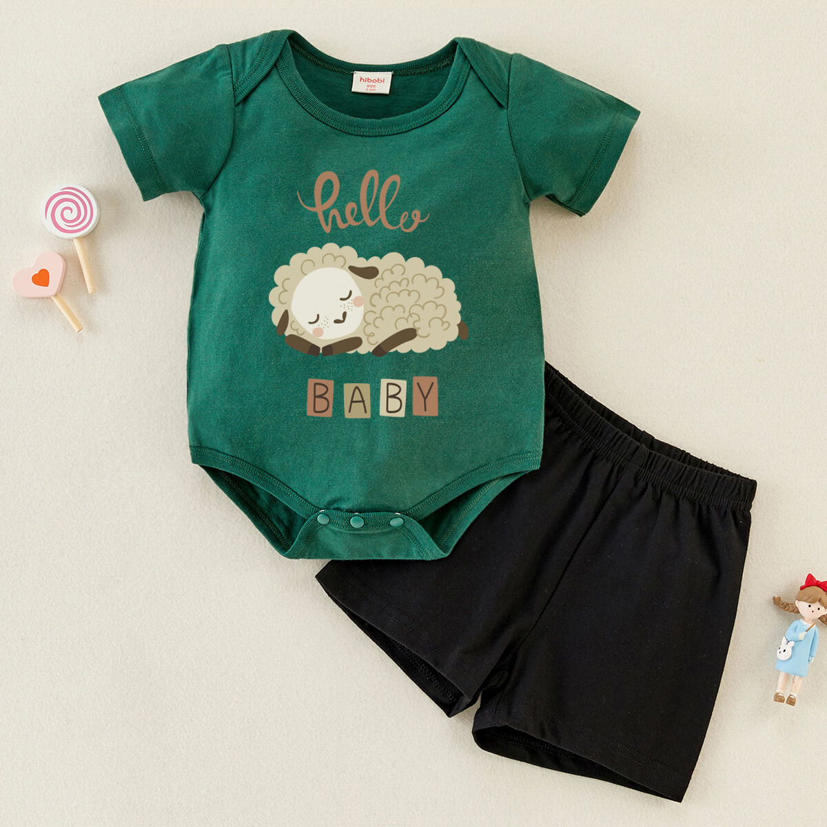 hibobi Baby Basic Sleeping Sheep Print Short Sleeves Suit Wholesale