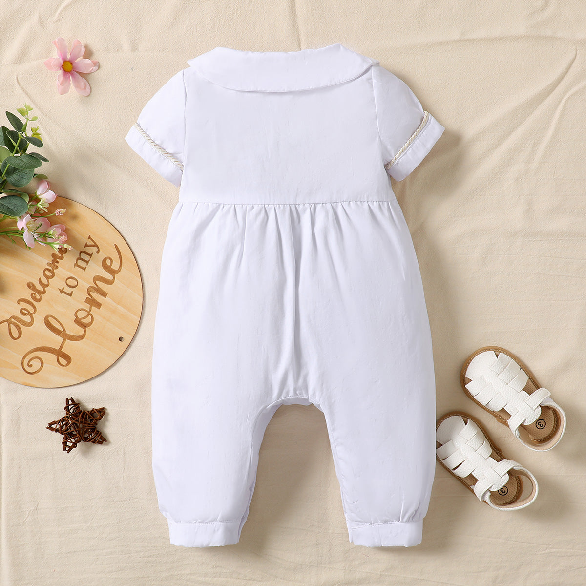 hibobi Baby Boy Lapel Short Sleeve Patchwork Gold Webbing Jumpsuit Wholesale