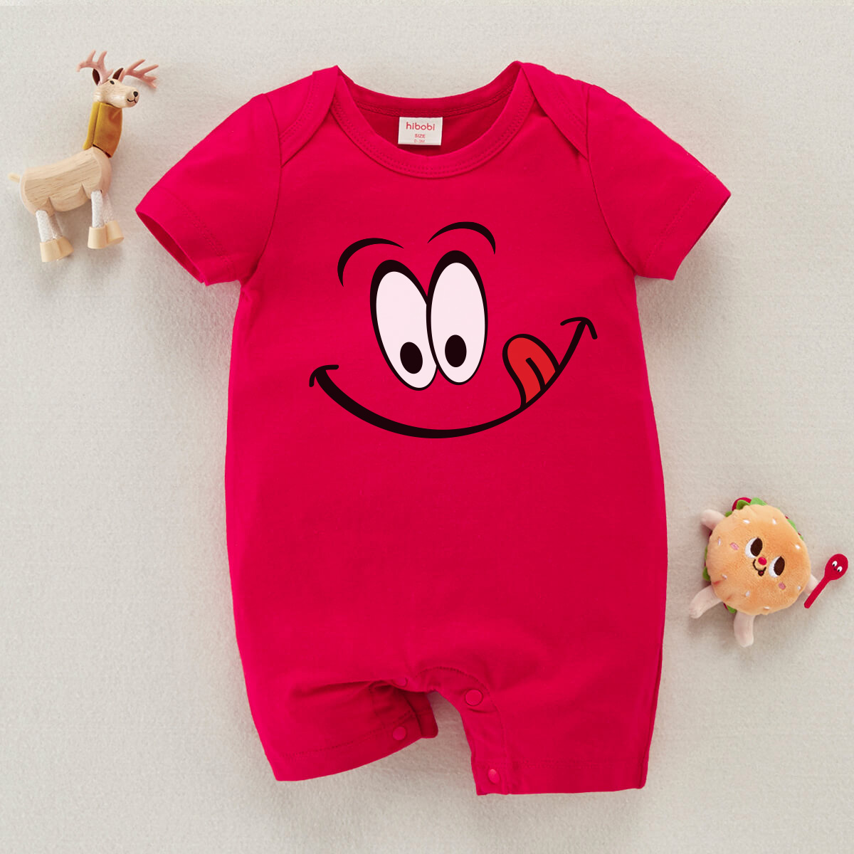 hibobi Baby Cartoon Emoji Print Short Sleeve Bodysuit Wholesale
