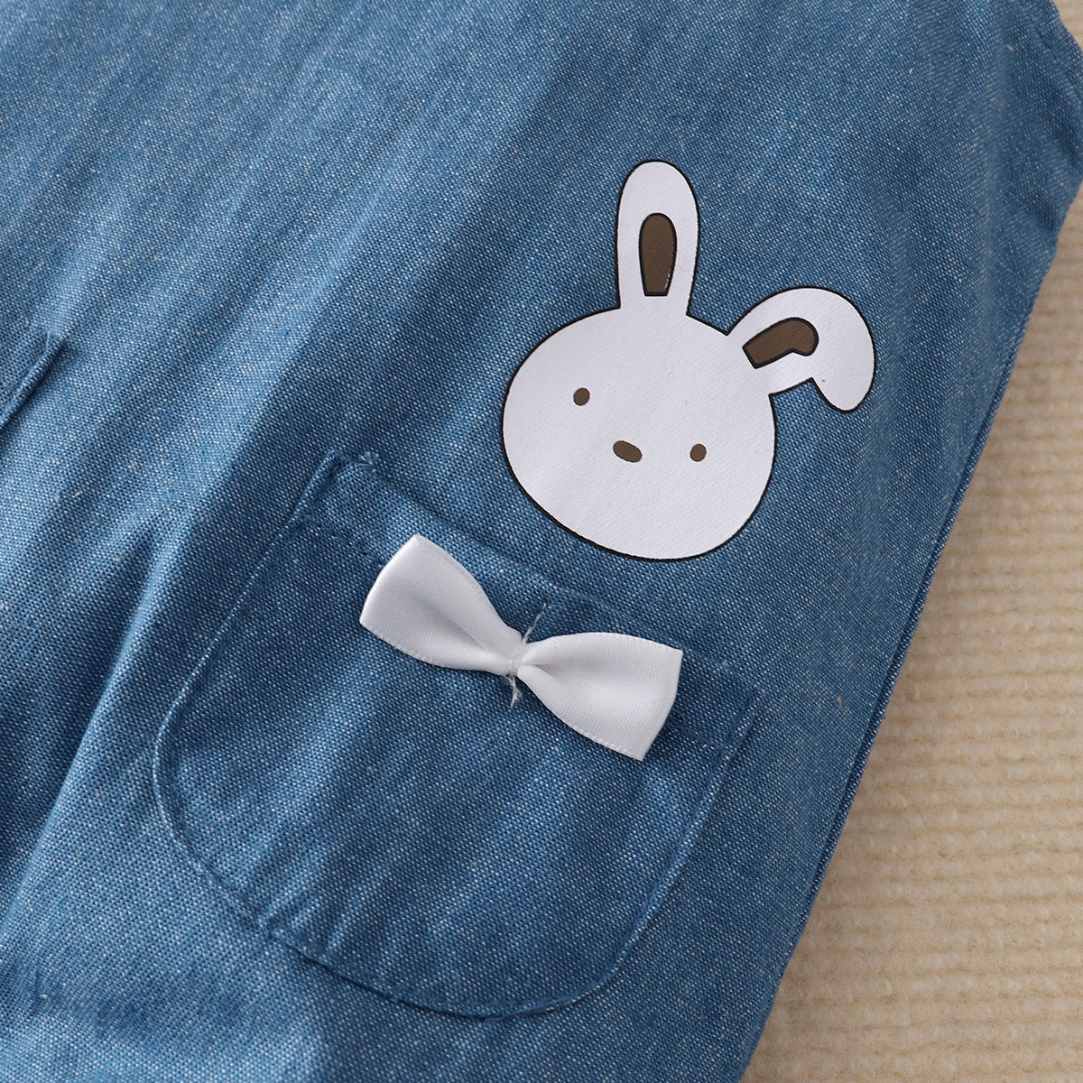 hibobi Baby Girl Cute Bunny Print Denim Vest Two-Piece Wholesale