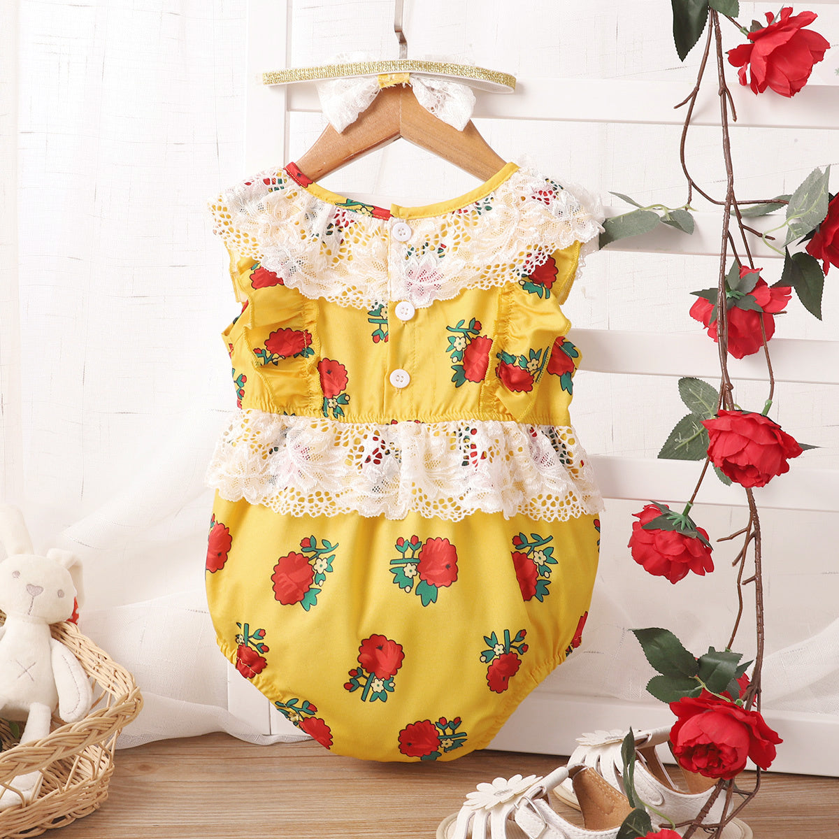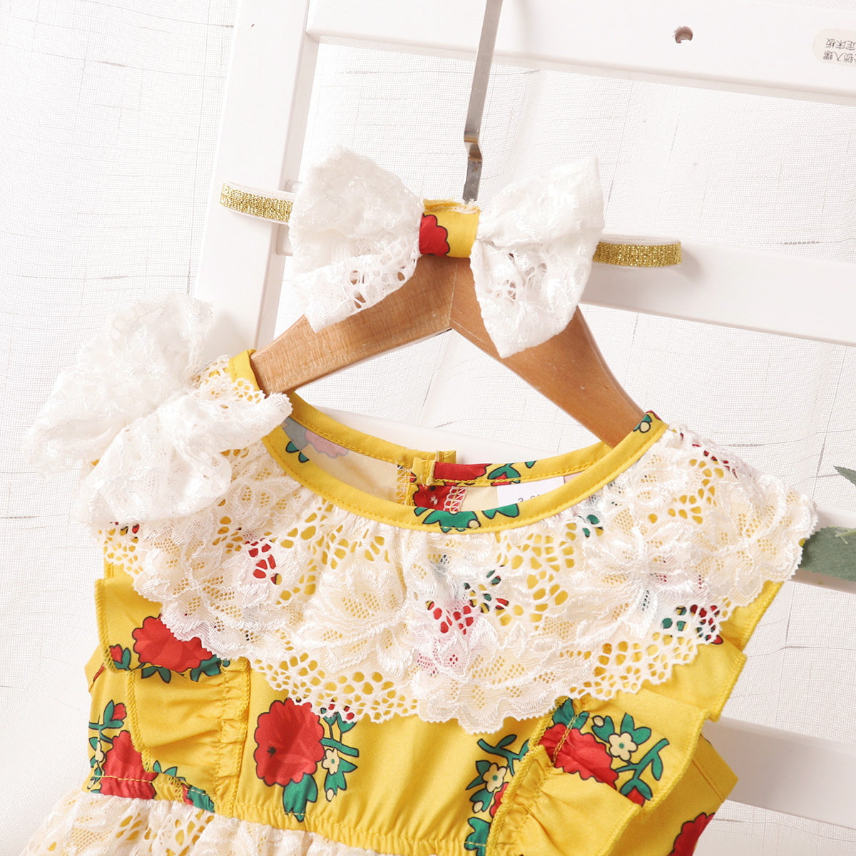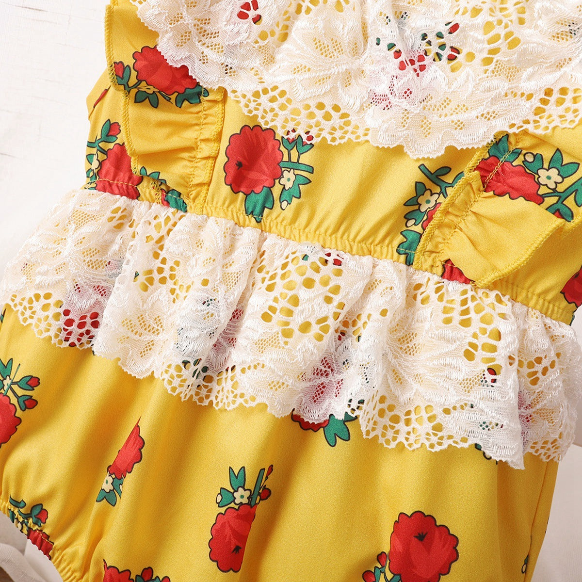 hibobi Baby Girl Floral Lace Neck Sleeveless Jumpsuit Wholesale
