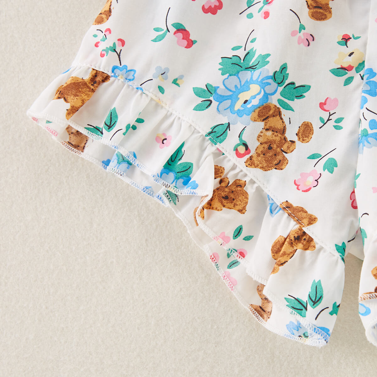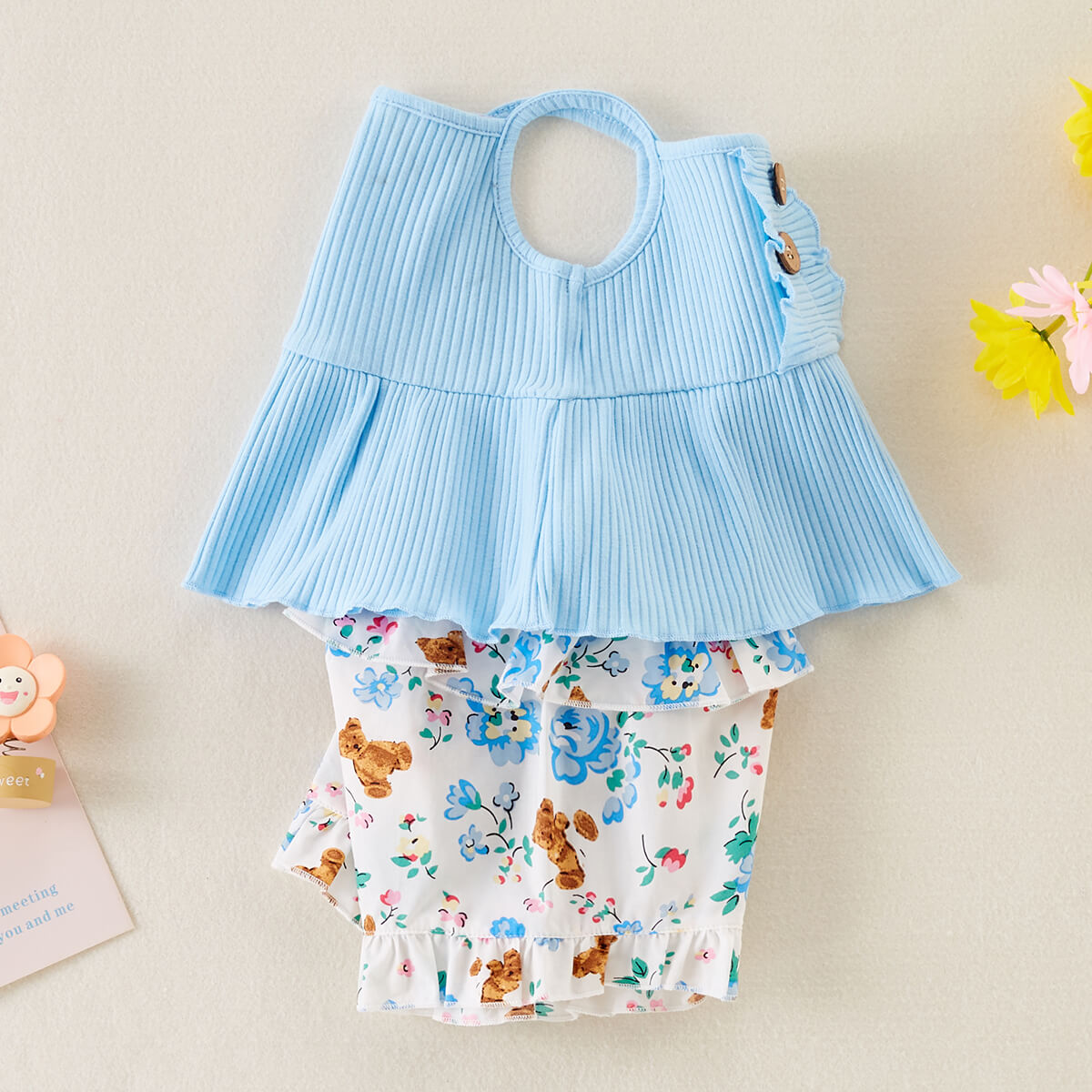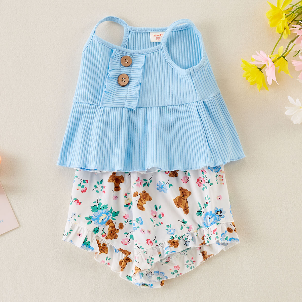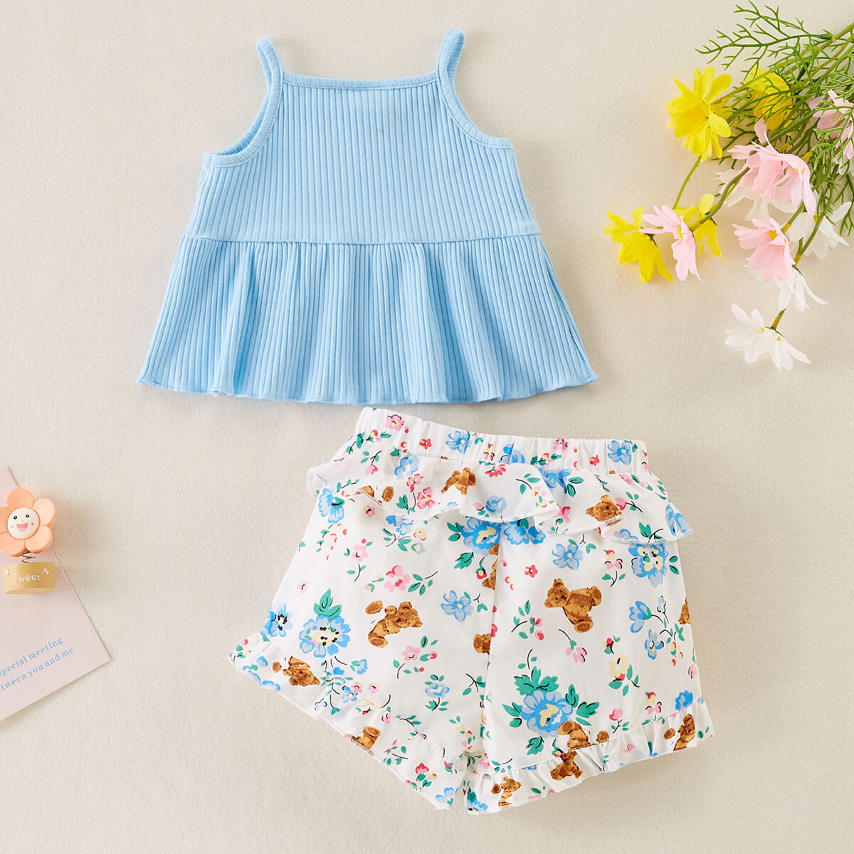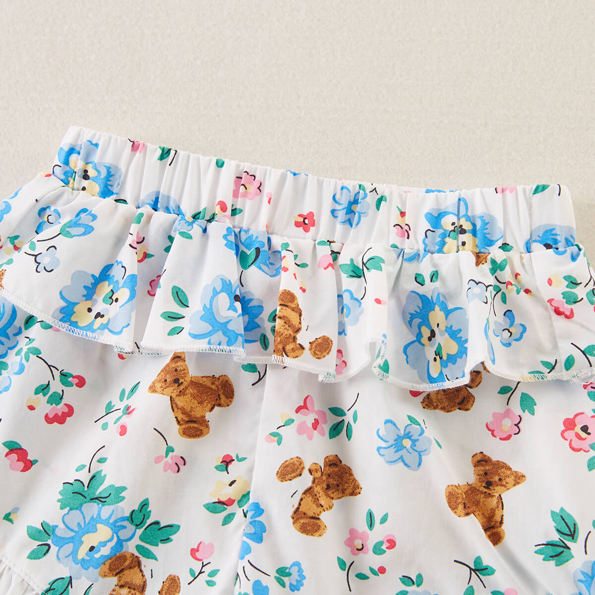 hibobi Baby Girl Fresh Floral Print RuffleTop and Shorts Wholesale