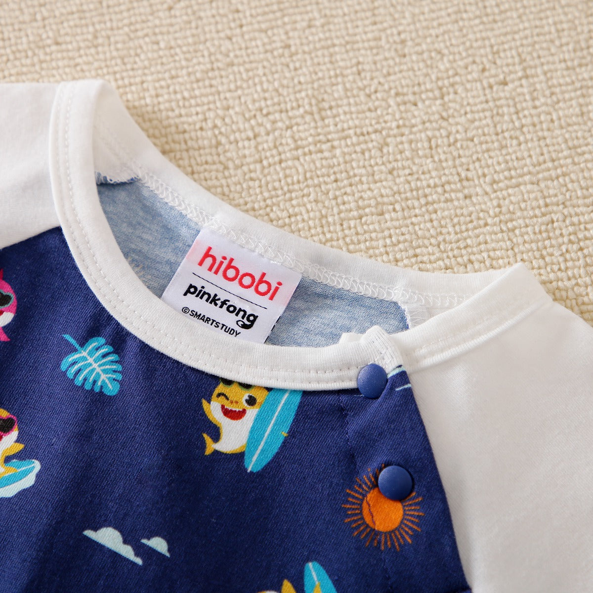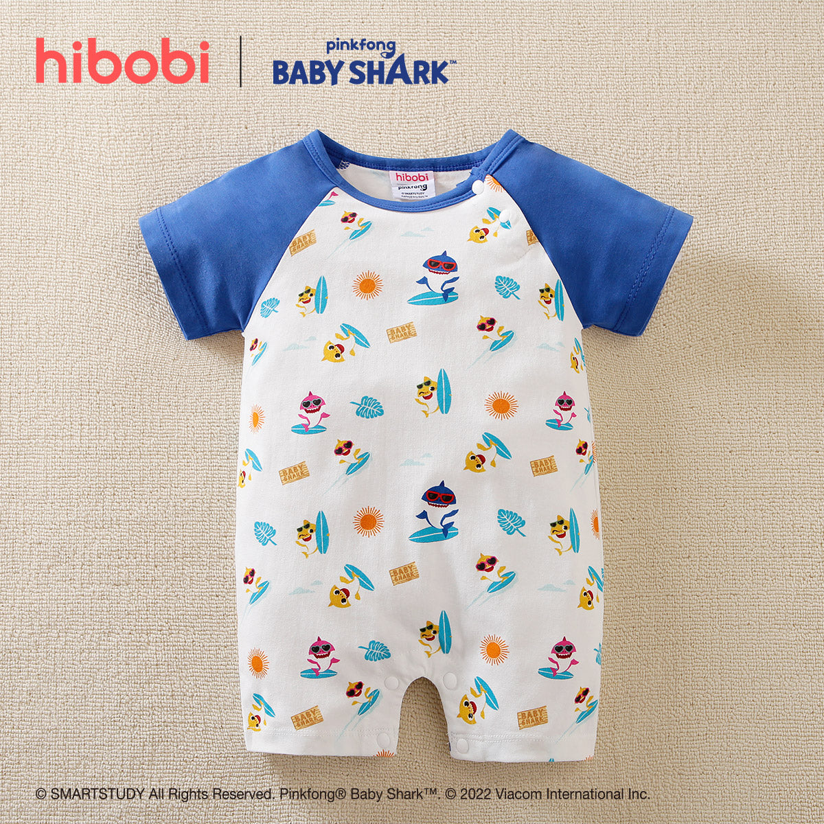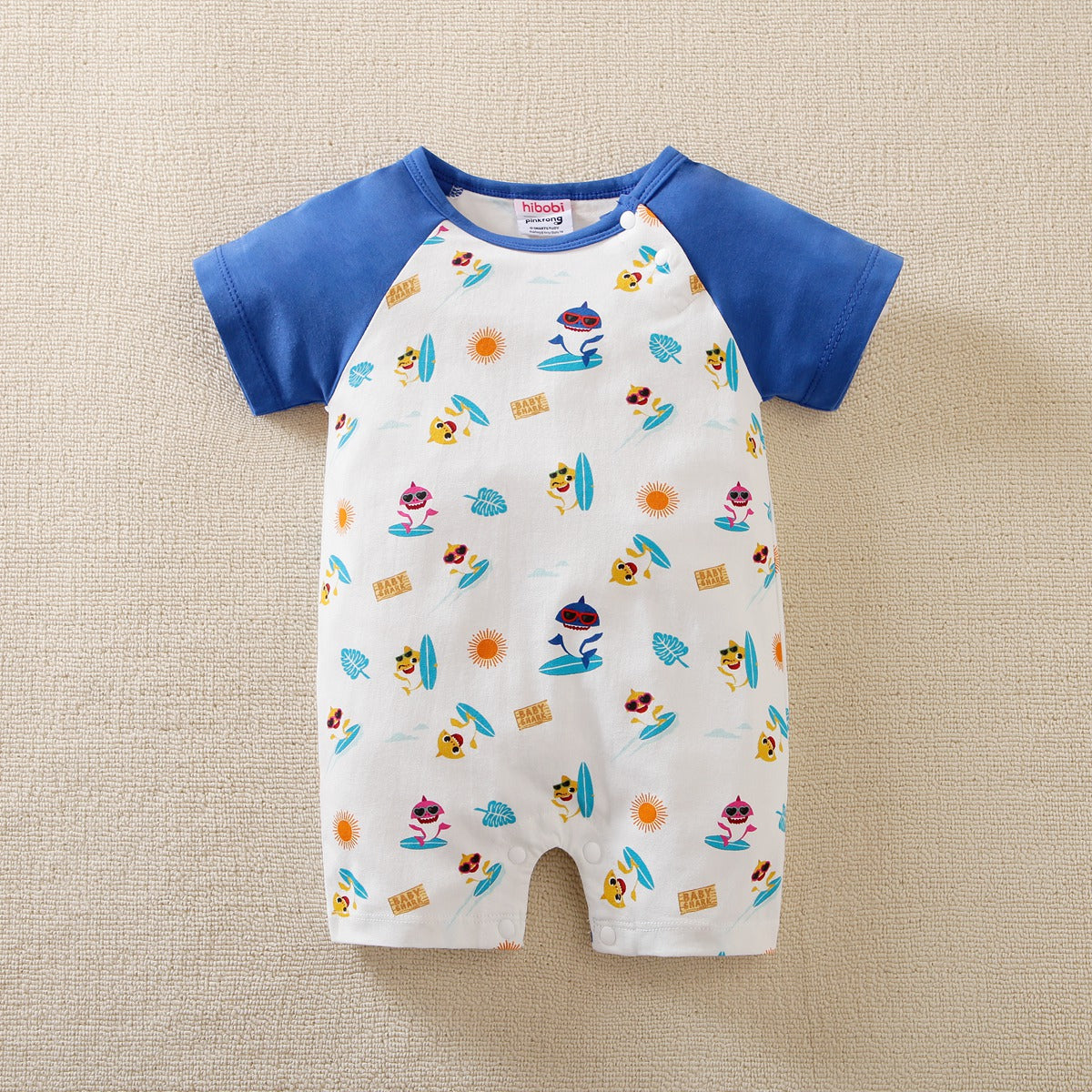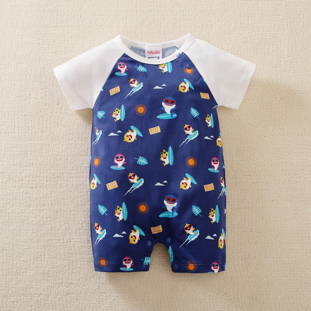 hibobi×BabyShark Baby Boy Cartoon Print Short Sleeve Cotton Jumpsuit Wholesale