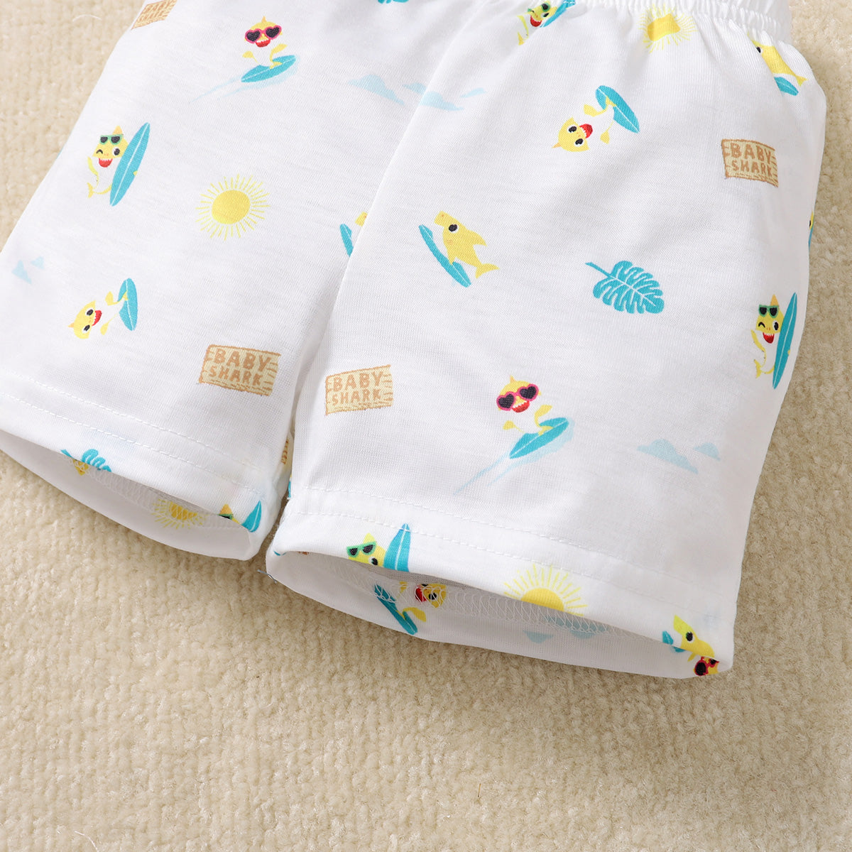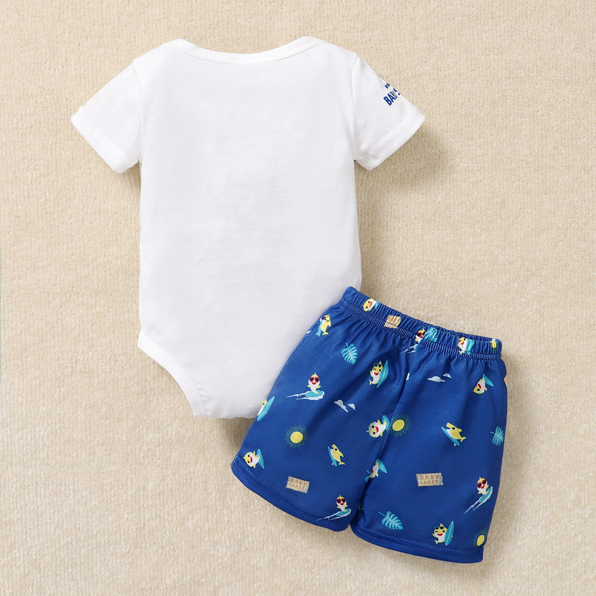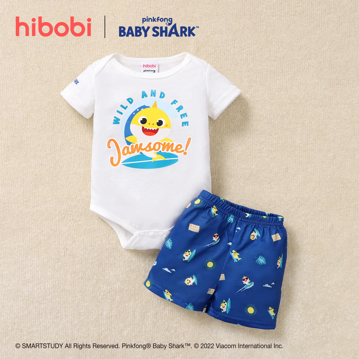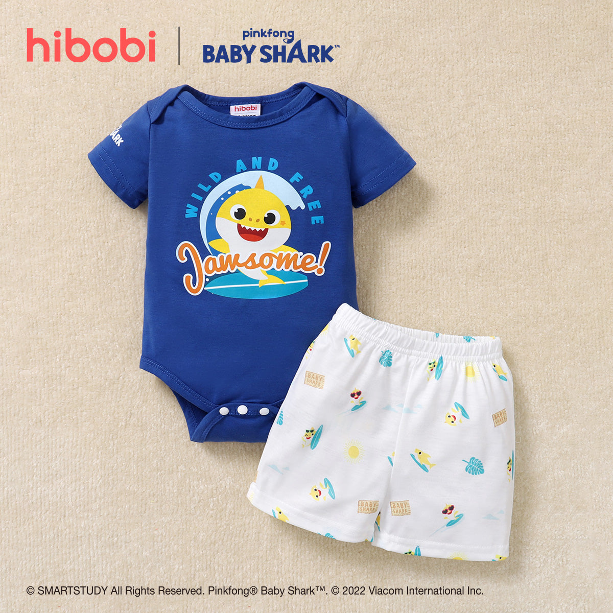 hibobi×BabyShark Baby Boy Cartoon Print Short Sleeve Cotton Two-piece Top+Pants Wholesale