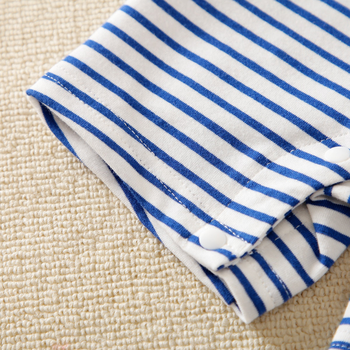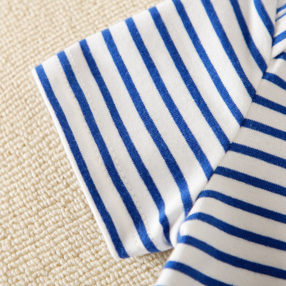 hibobi×Babyshark Baby Cartoon Print & Stripes Short Sleeve Cotton Jumpsuit Wholesale