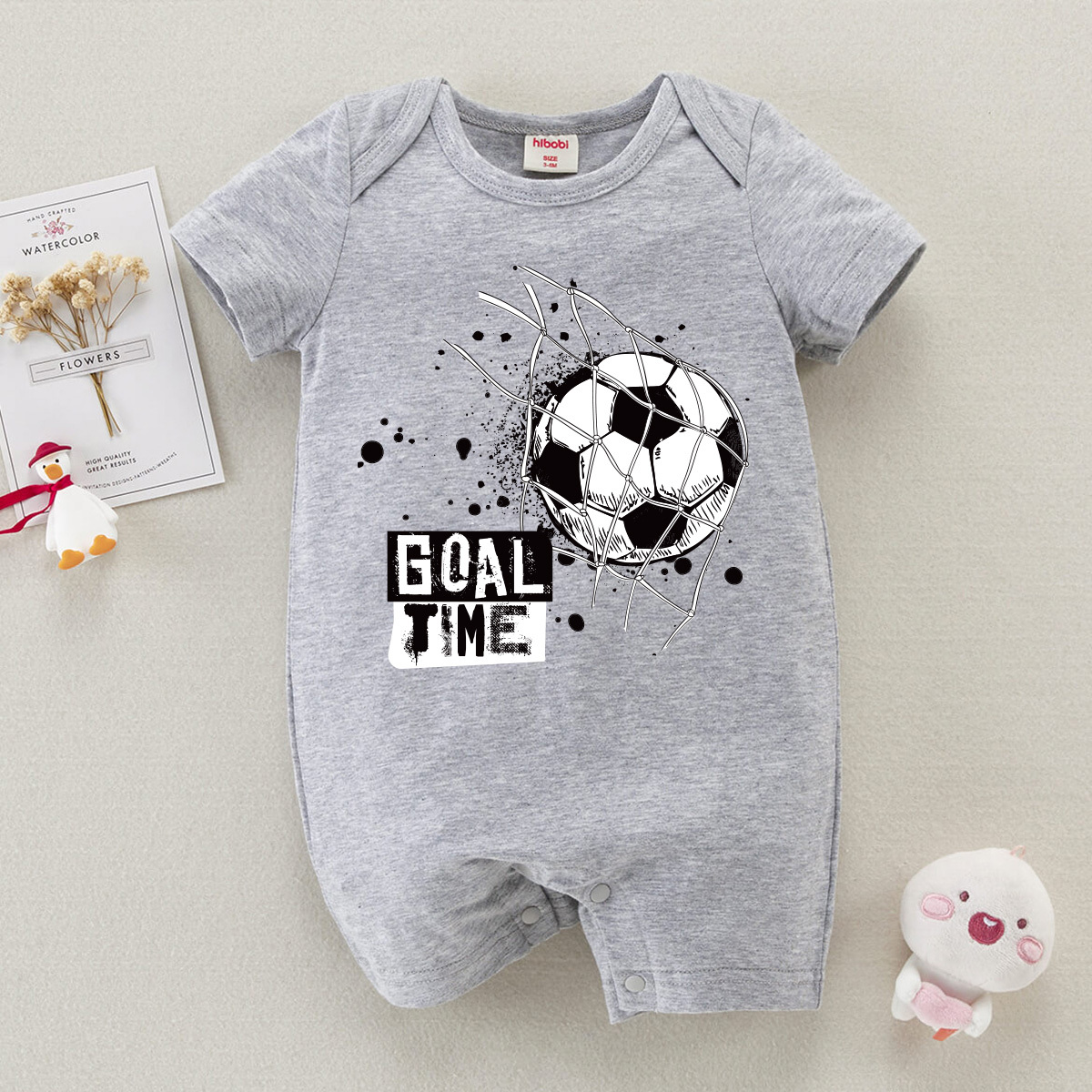 hibobi Boy Baby Football Shot On Goal Print Short Sleeve Bodysuit Wholesale