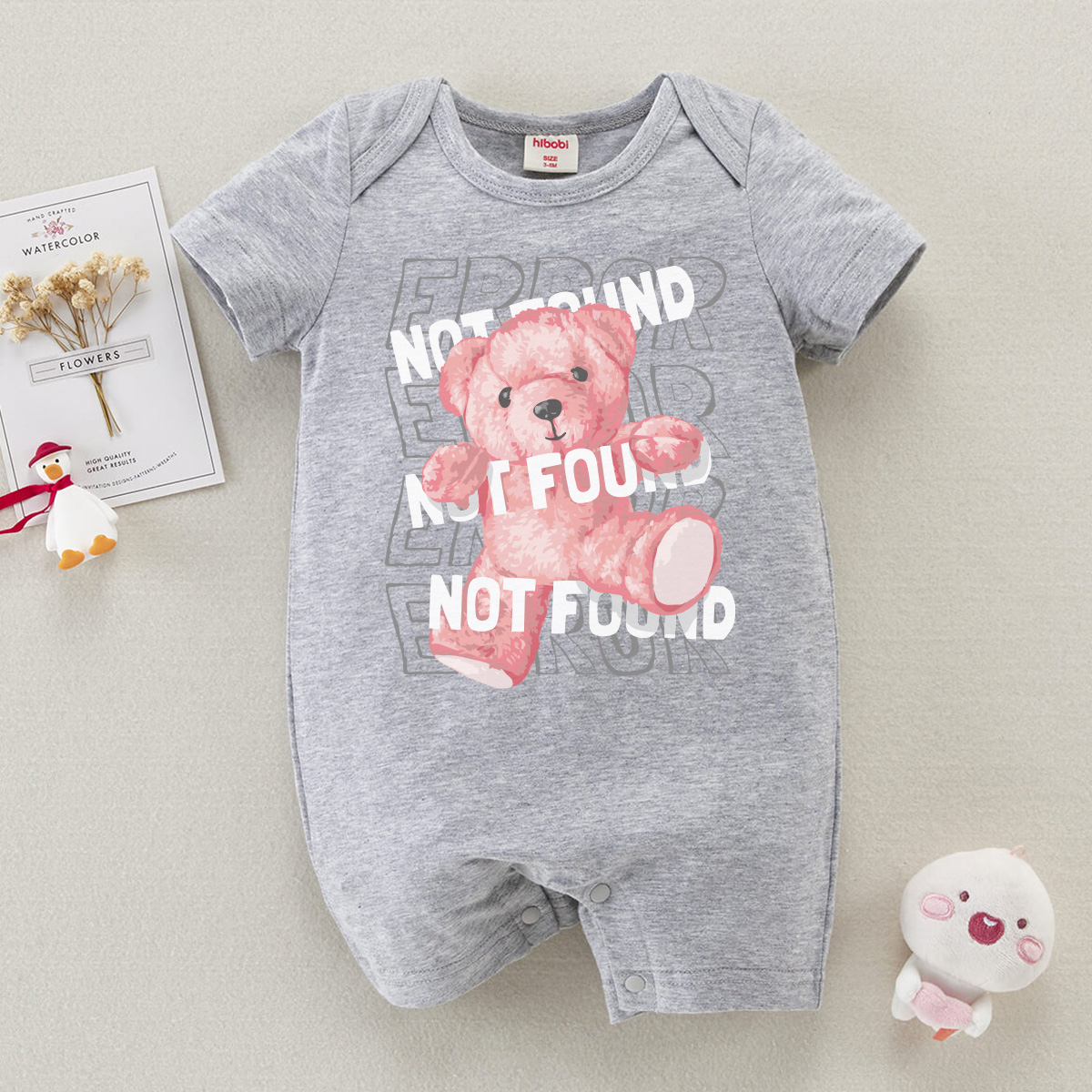 hibobi Girl Baby Alphabet Pink Bear Print Short Sleeve Bodysuit Wholesale