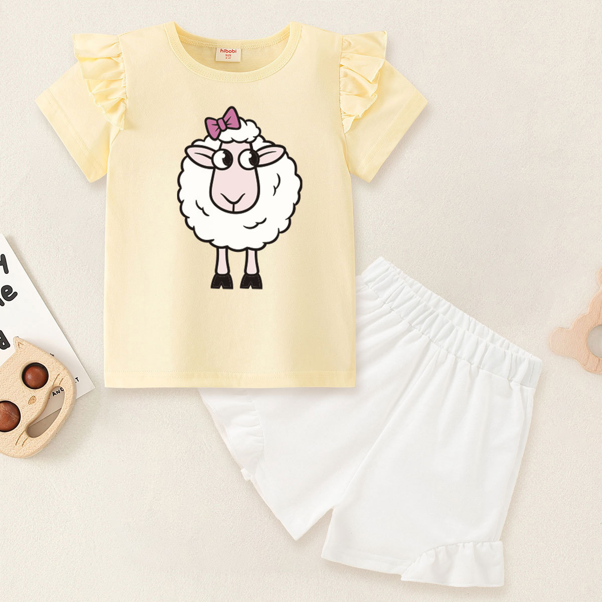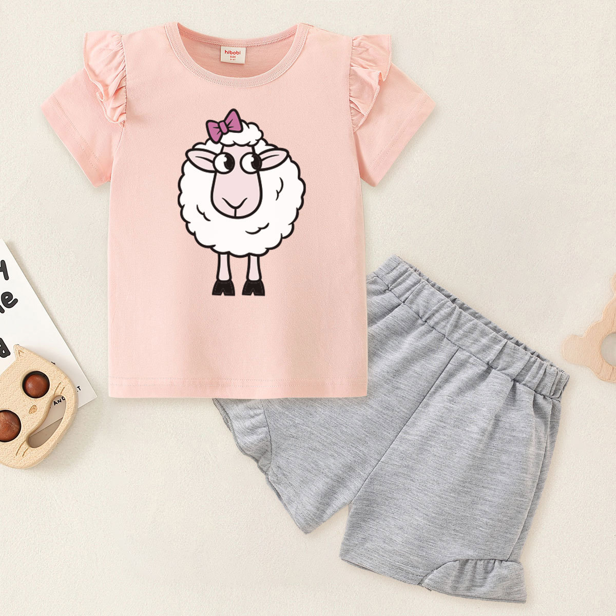 Toddler Girl Baby Basic Sheep With Bows Print Short-sleeved T-shirt Suit Wholesale