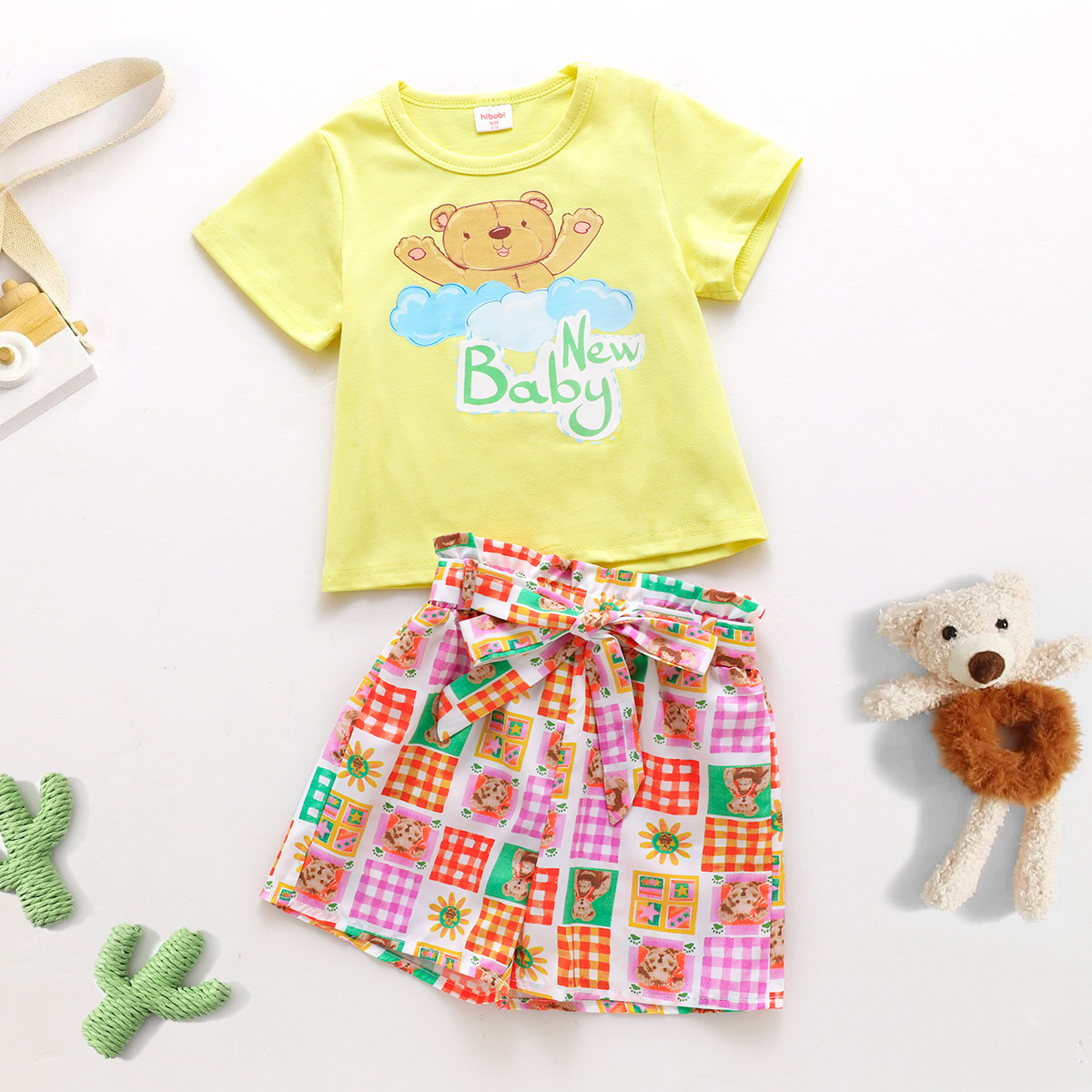 Toddler Girl Baby Bear Print Top & Floral Plaid Trousers Suit Wholesale