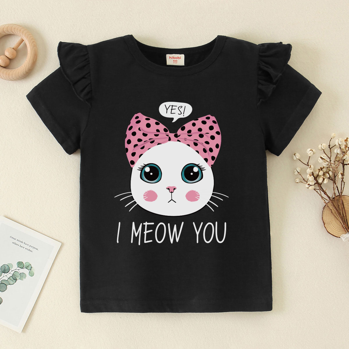 Toddler Girl Baby Bow Tie Cat Fly Sleeve T-shirt Wholesale