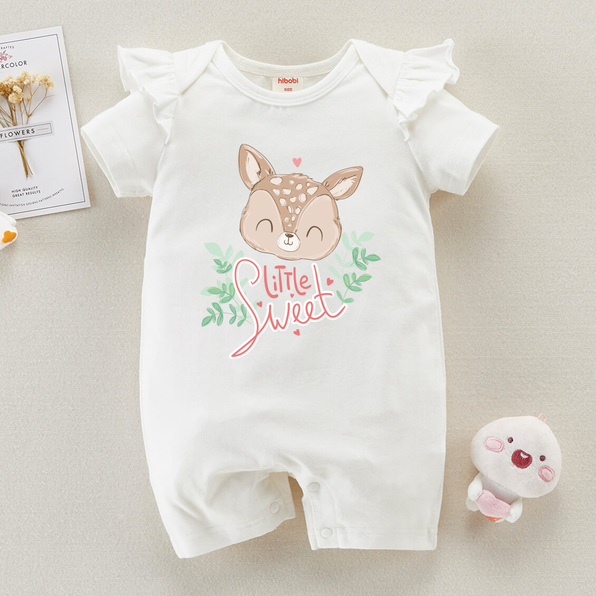 hibobi Girl Baby Fawn Print Short Flying Sleeve Bodysuit Wholesale