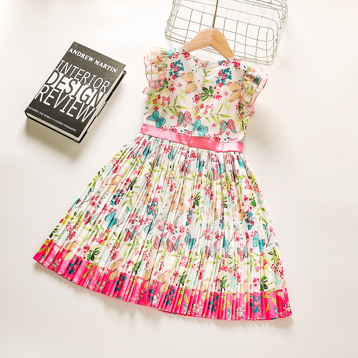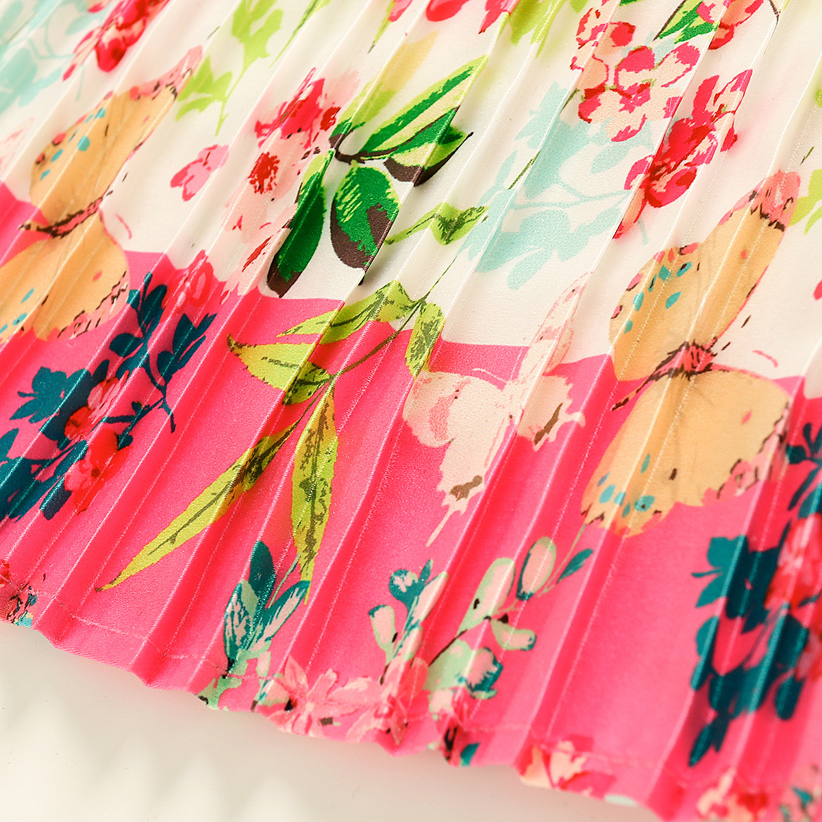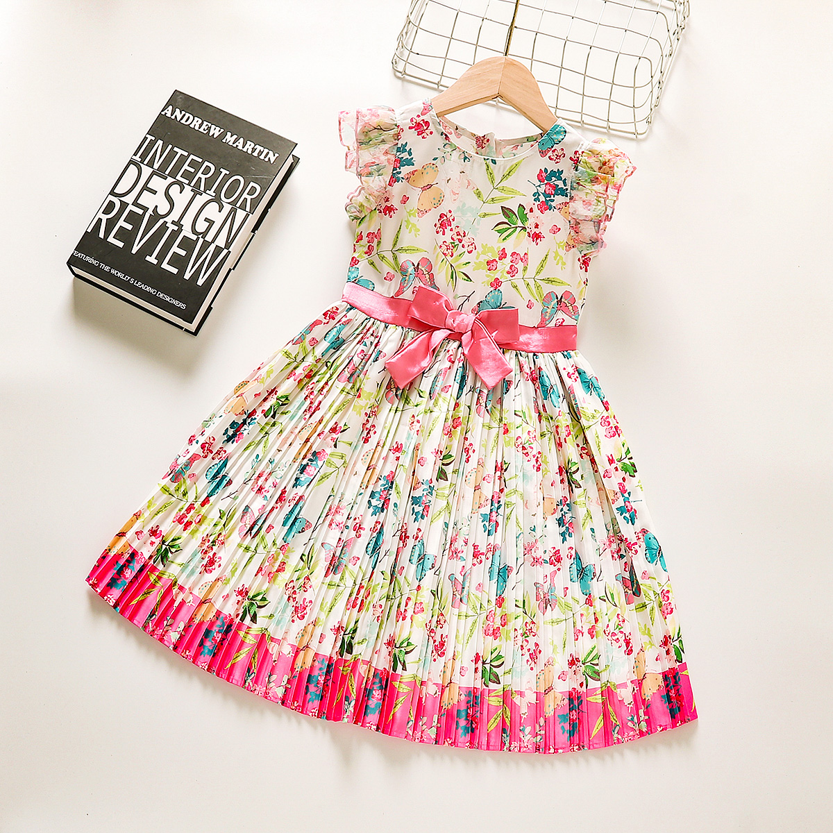 Toddler Girl Baby Floral Sleeveless Round Neck Bow Pleated Dress Wholesale