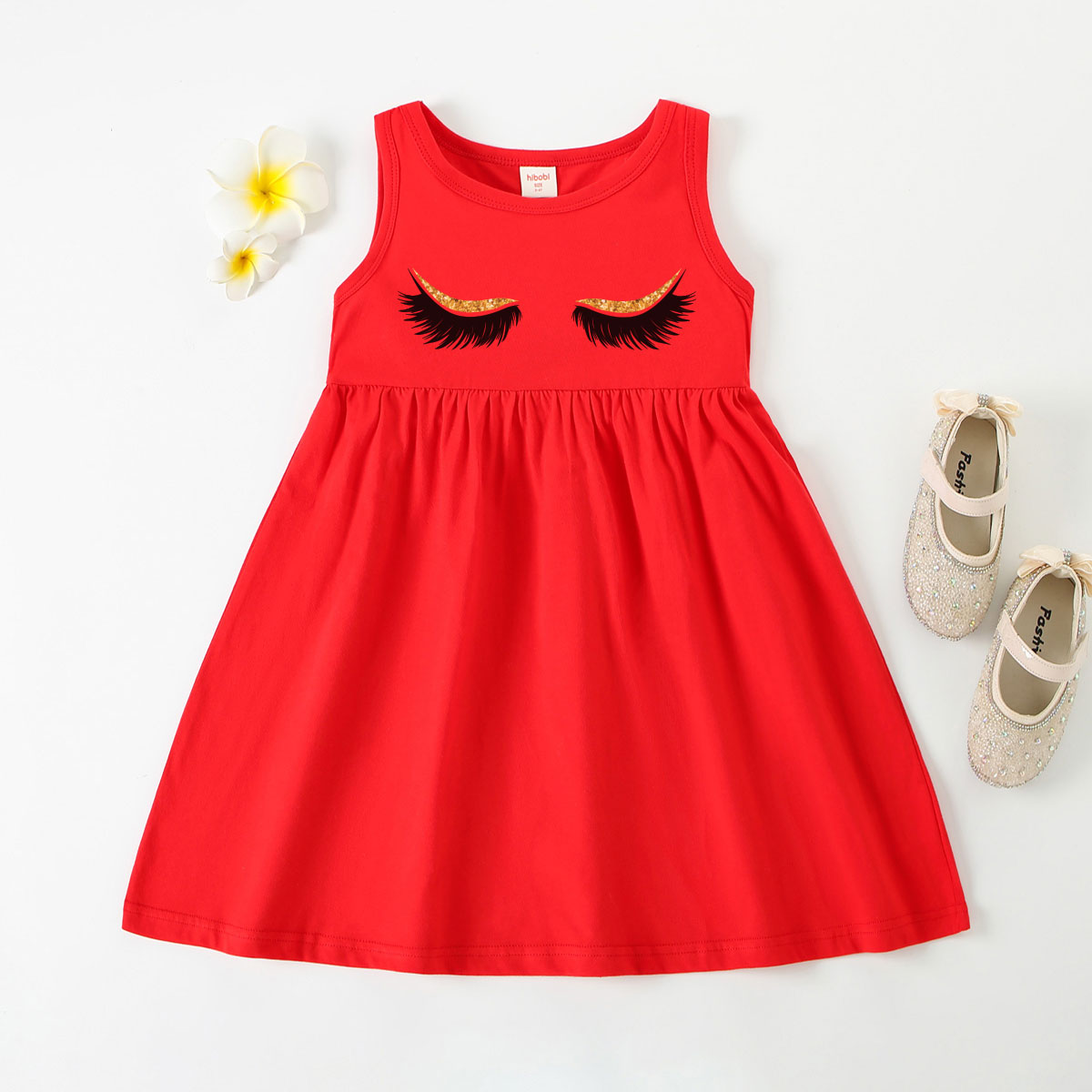 Toddler Girl Baby Glittering Lashes Sleeveless Dress Wholesale