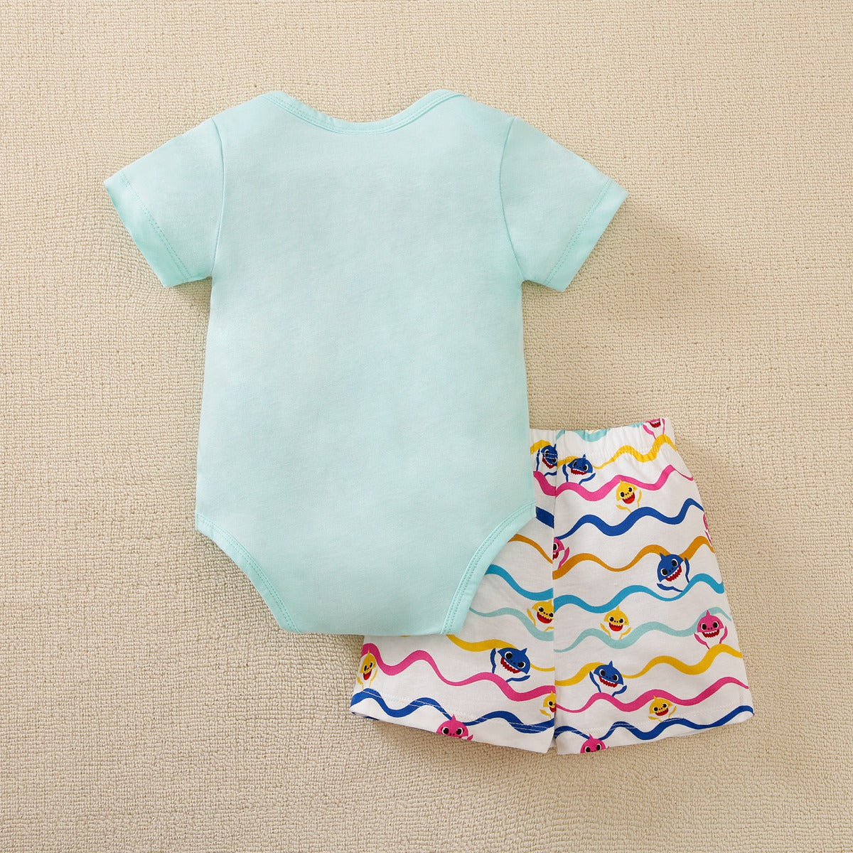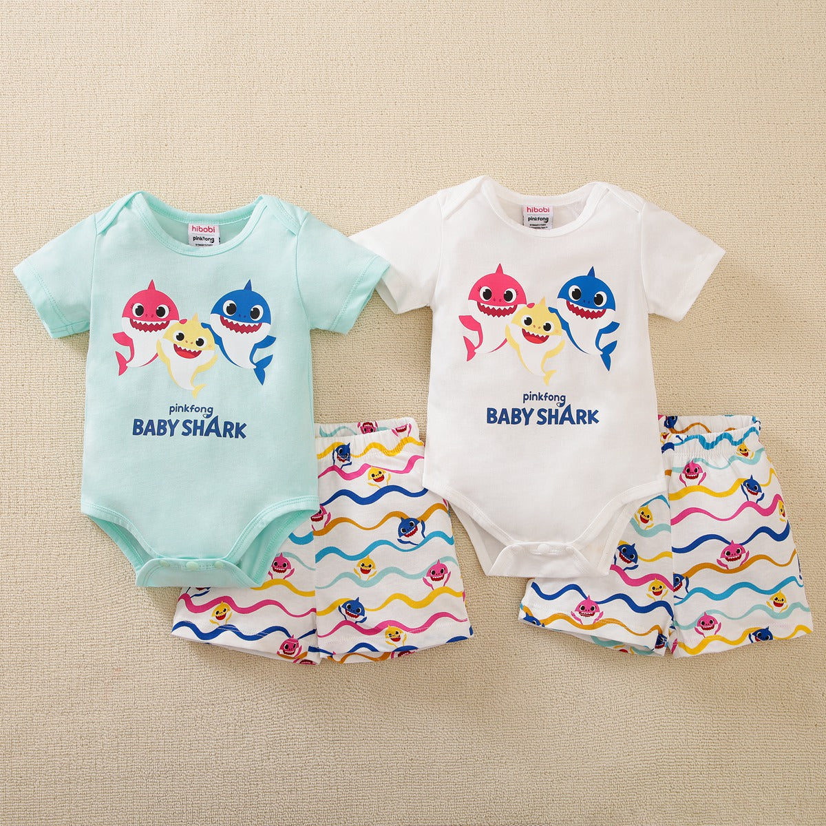 hibobi×IP Babyshark Baby Boys Cute Print Stripe Short Sleeve Cotton Jumpsuit & Shorts Wholesale