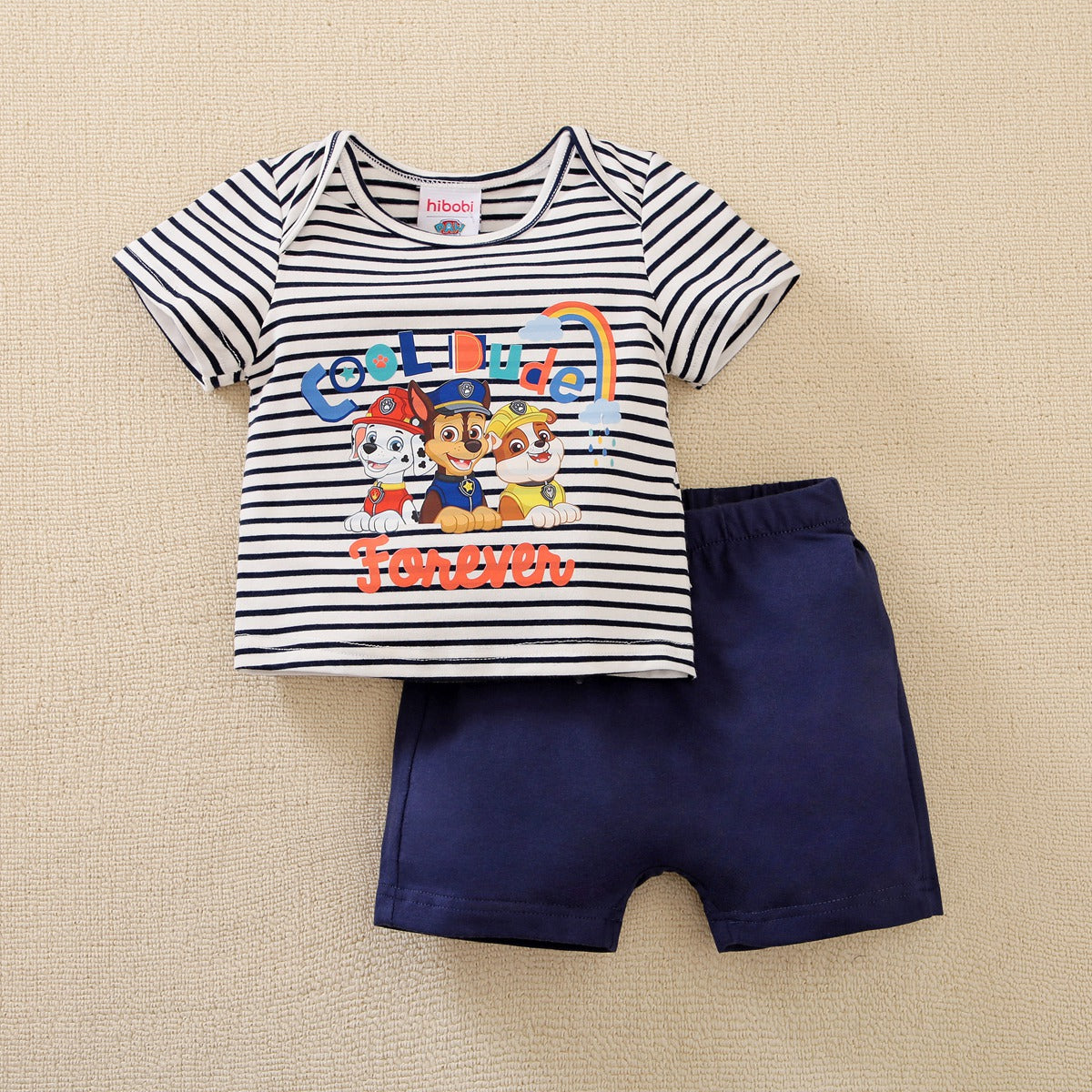 hibobi×PAW Patrol Baby Boy Cartoon Print Short Sleeve Cotton T-shirt and Pants Set Wholesale