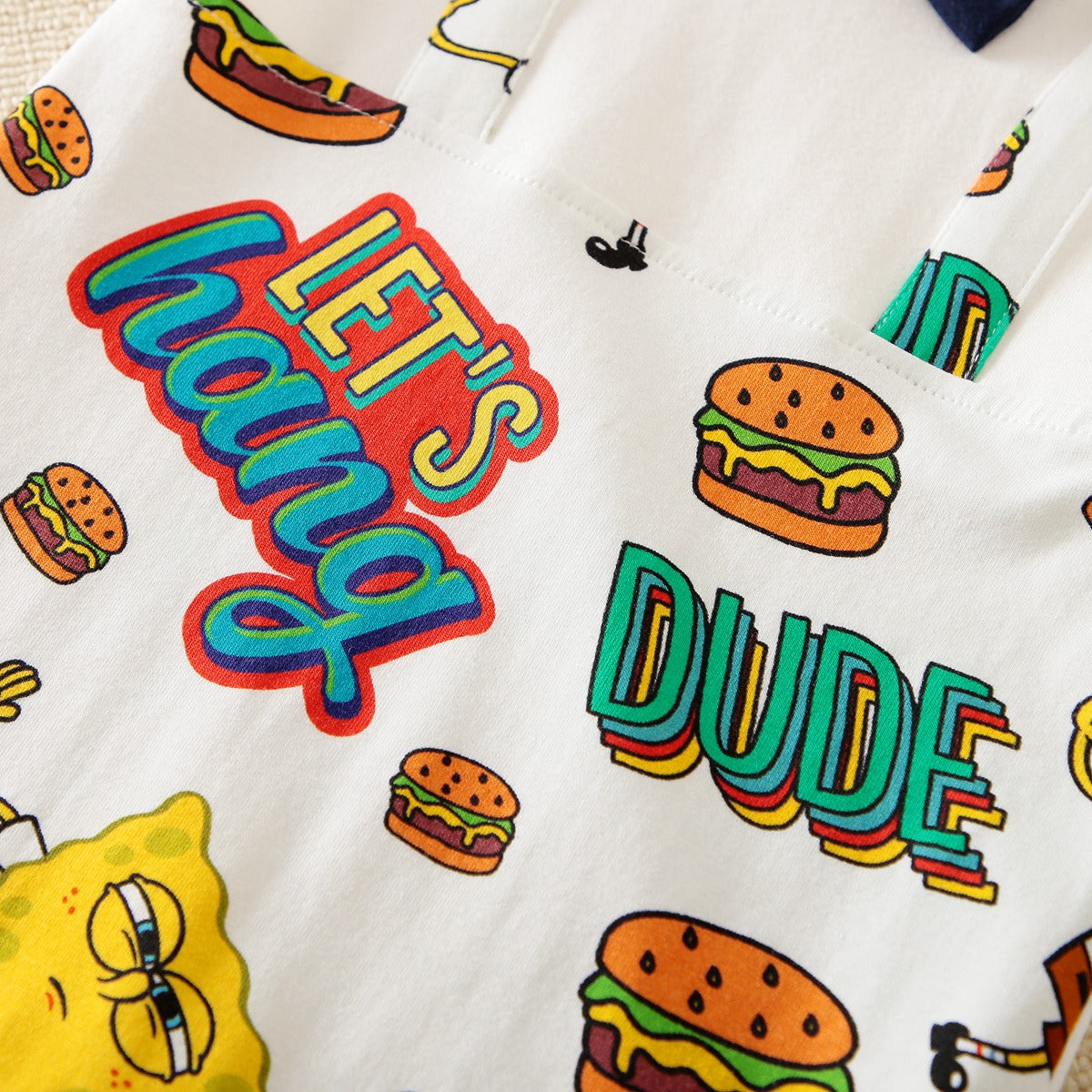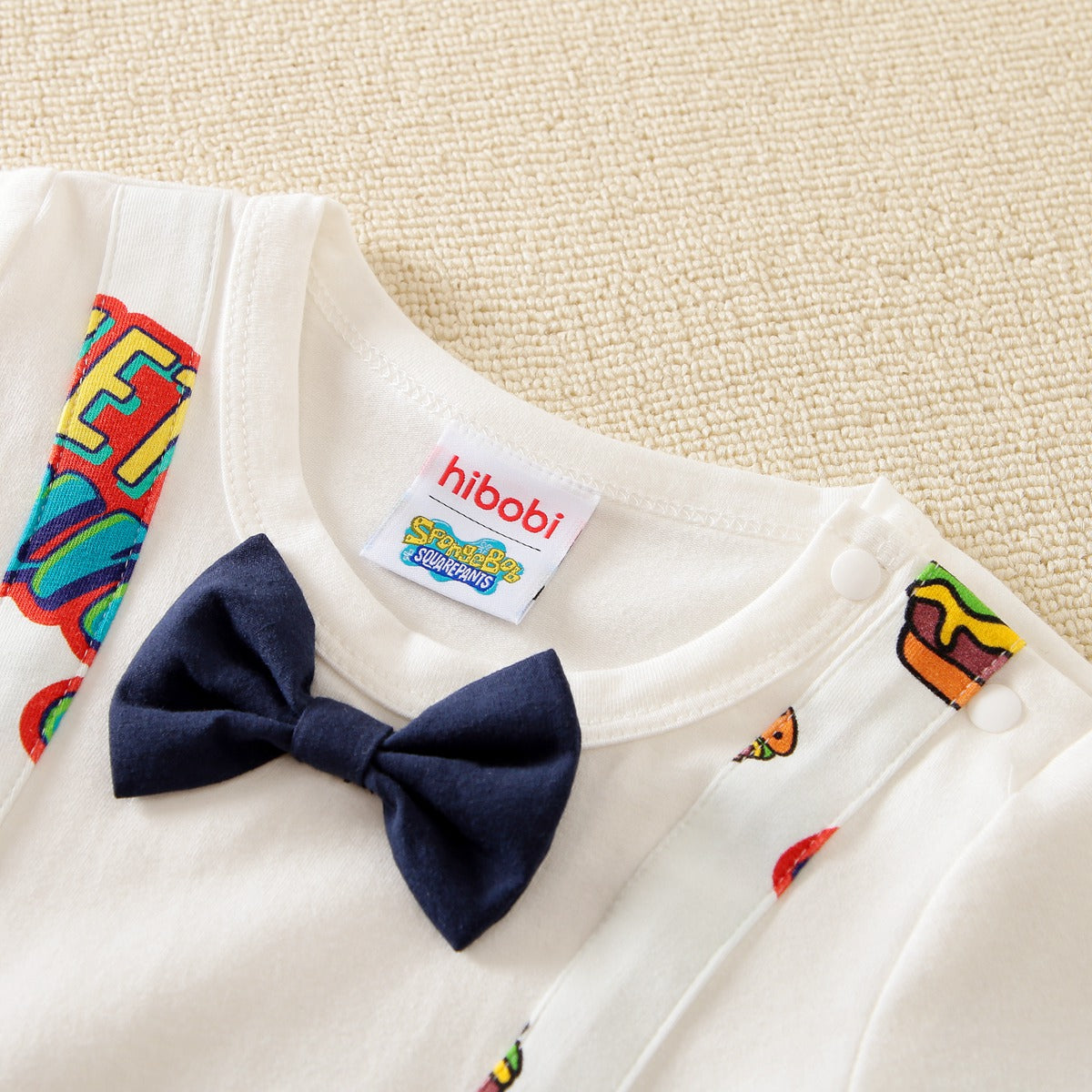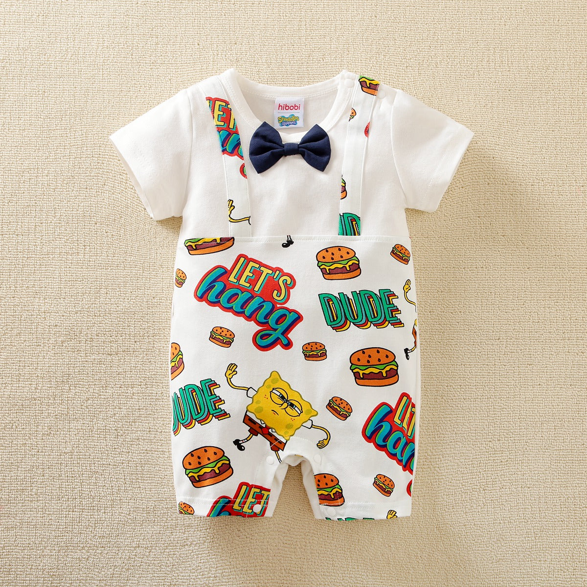 hibobi×Spongebob Baby Boy Cartoon Print Short Sleeve Bow Tie Cotton Bodysuit Wholesale