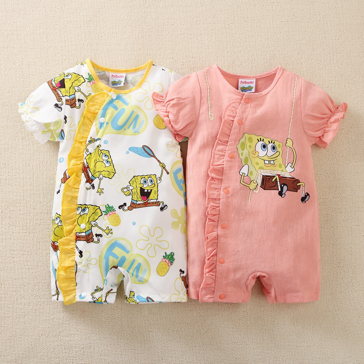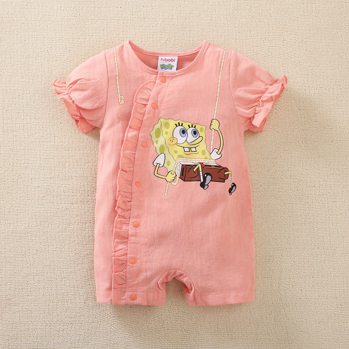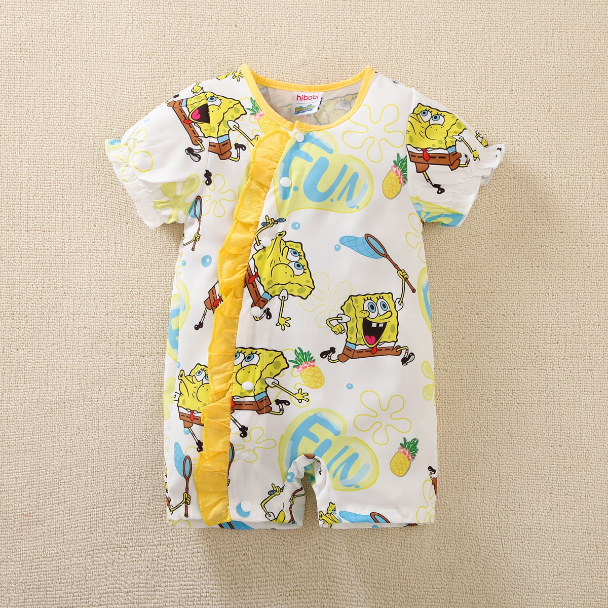 hibobi×Spongebob Baby Girl Cartoon Print Ruffle jumpsuit Wholesale