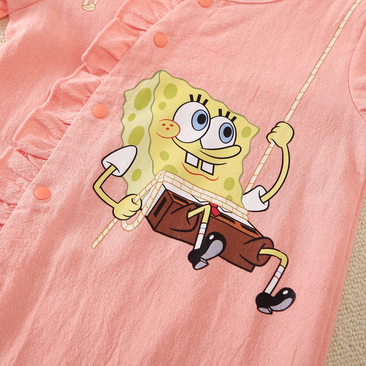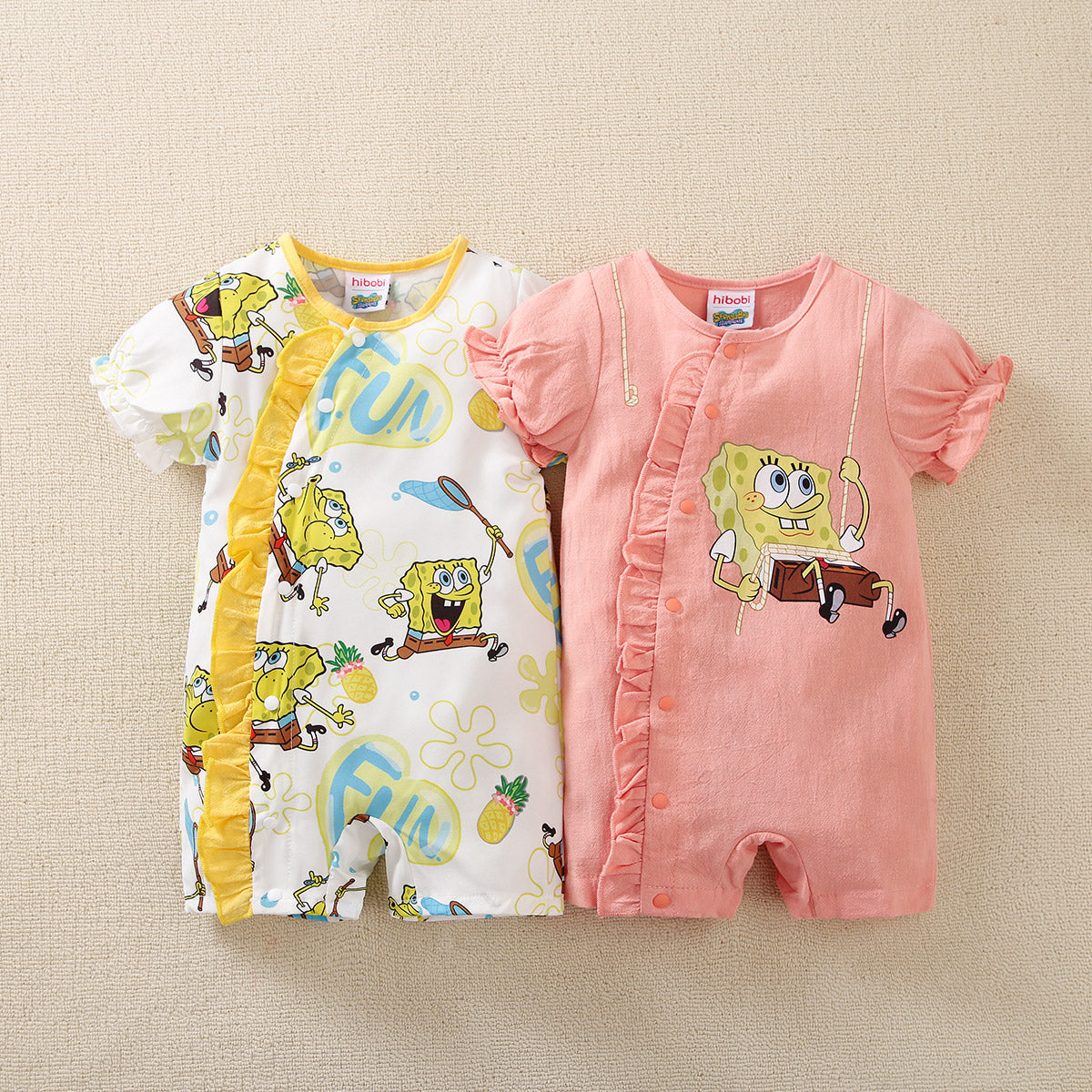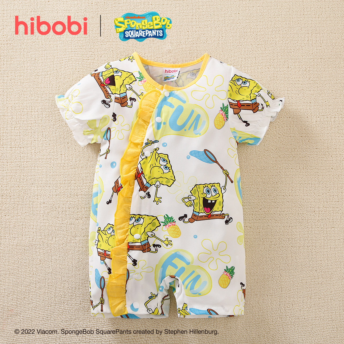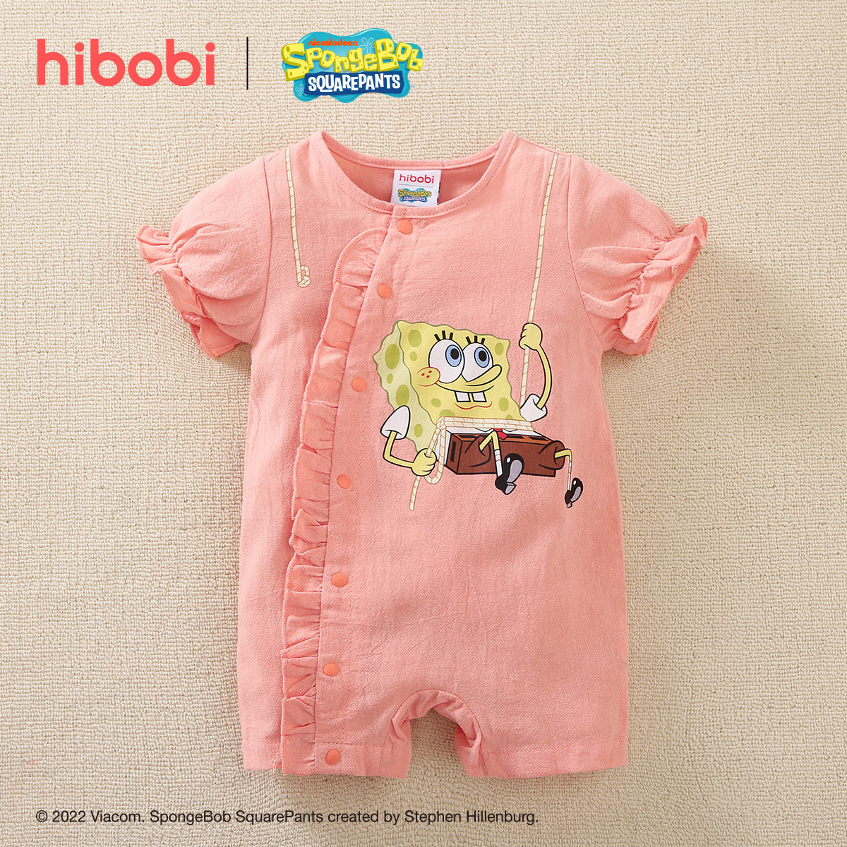hibobi×Spongebob Baby Girl Cartoon Print Ruffle jumpsuit Wholesale
