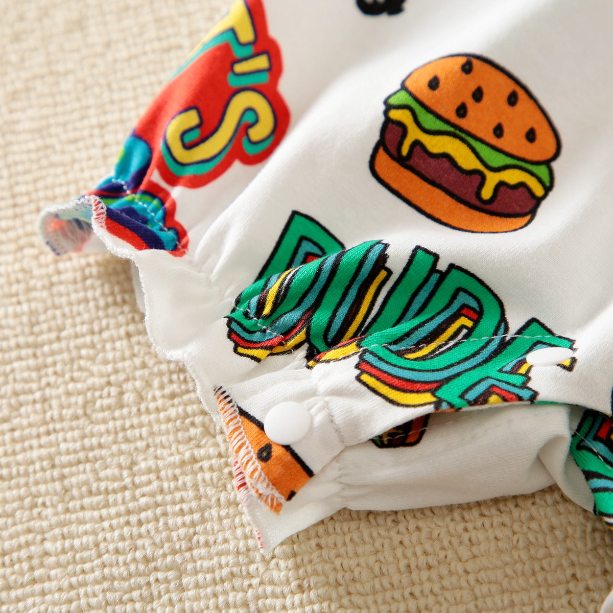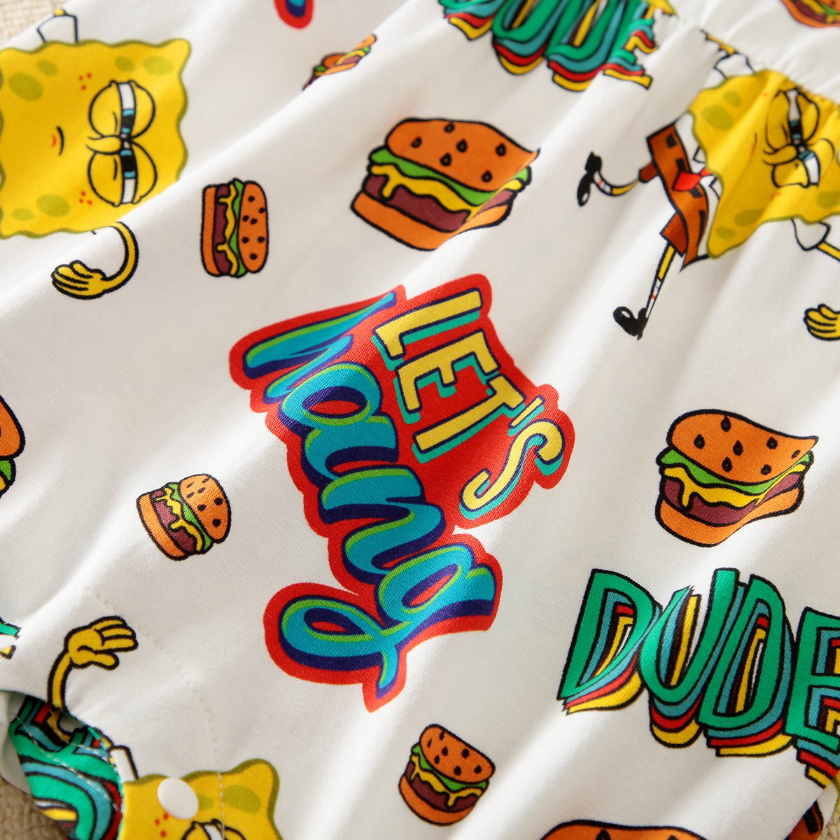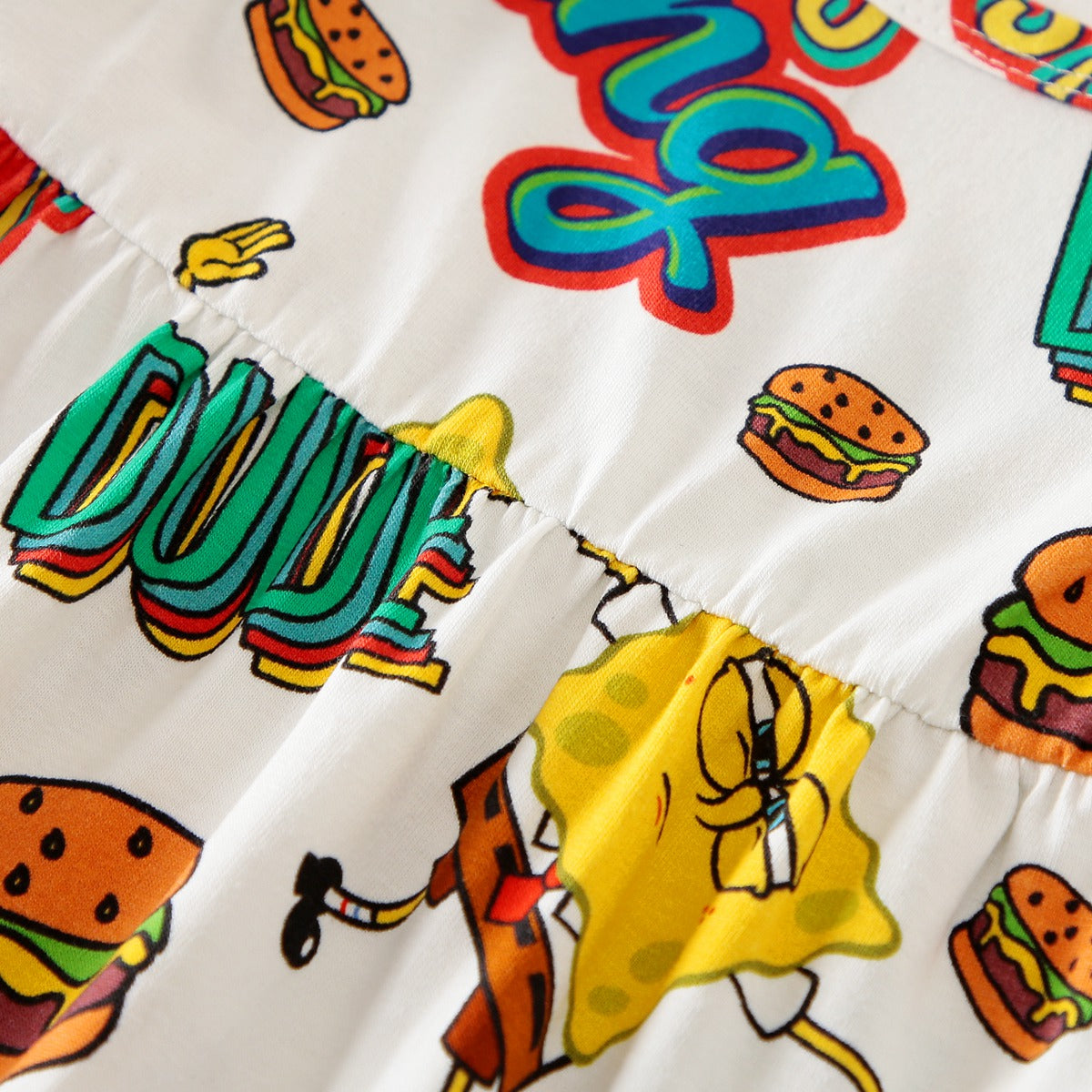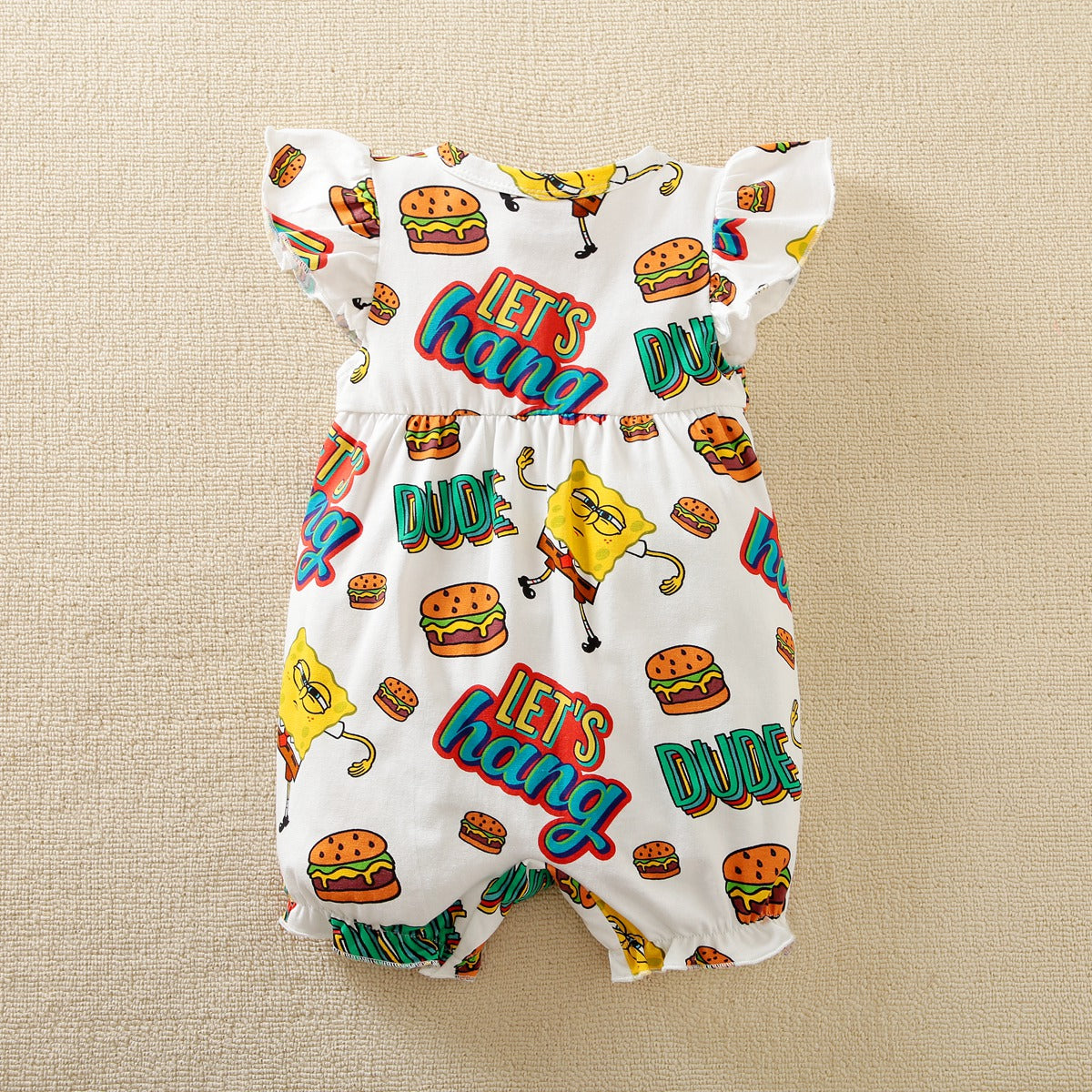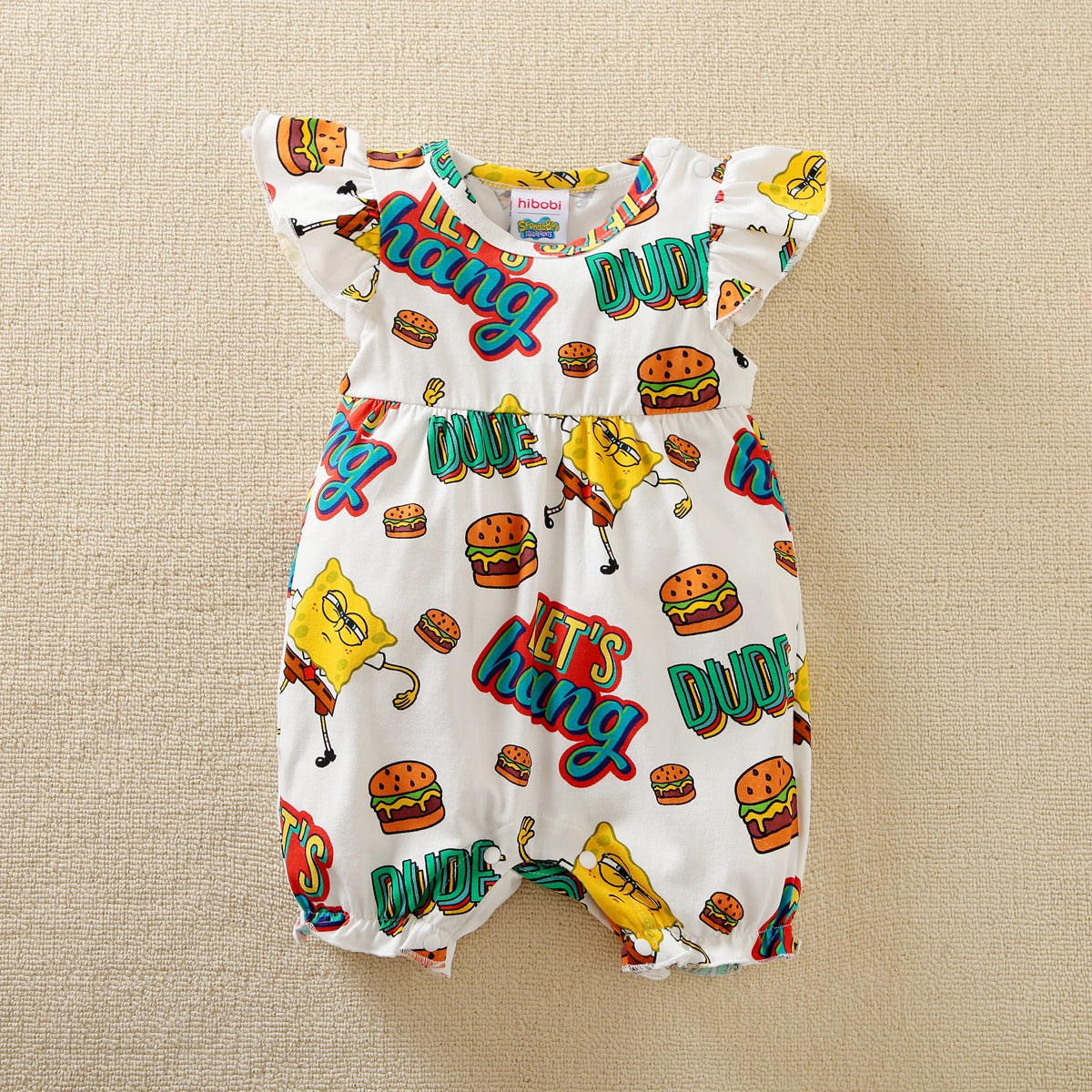 hibobi×Spongebob Baby Girl Cartoon Print Ruffle Short Sleeve Cotton Bodysuit Wholesale