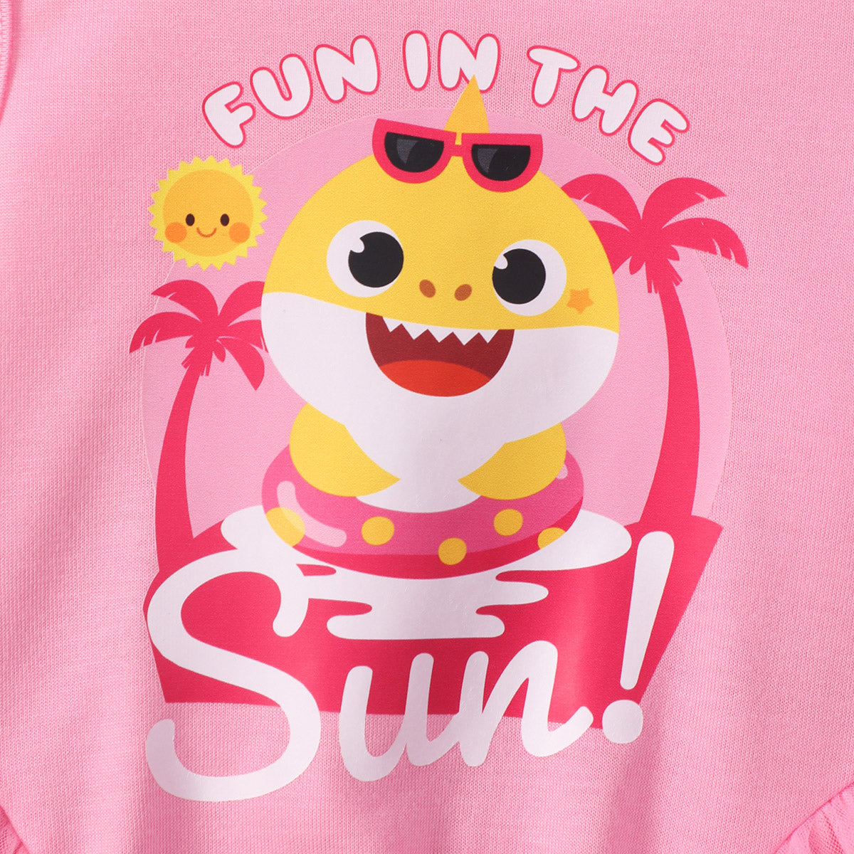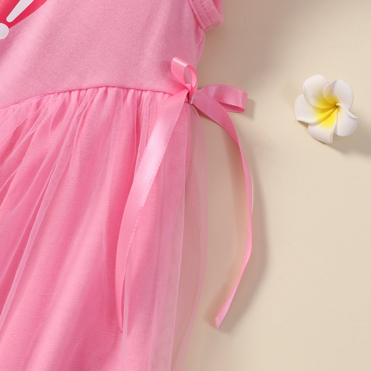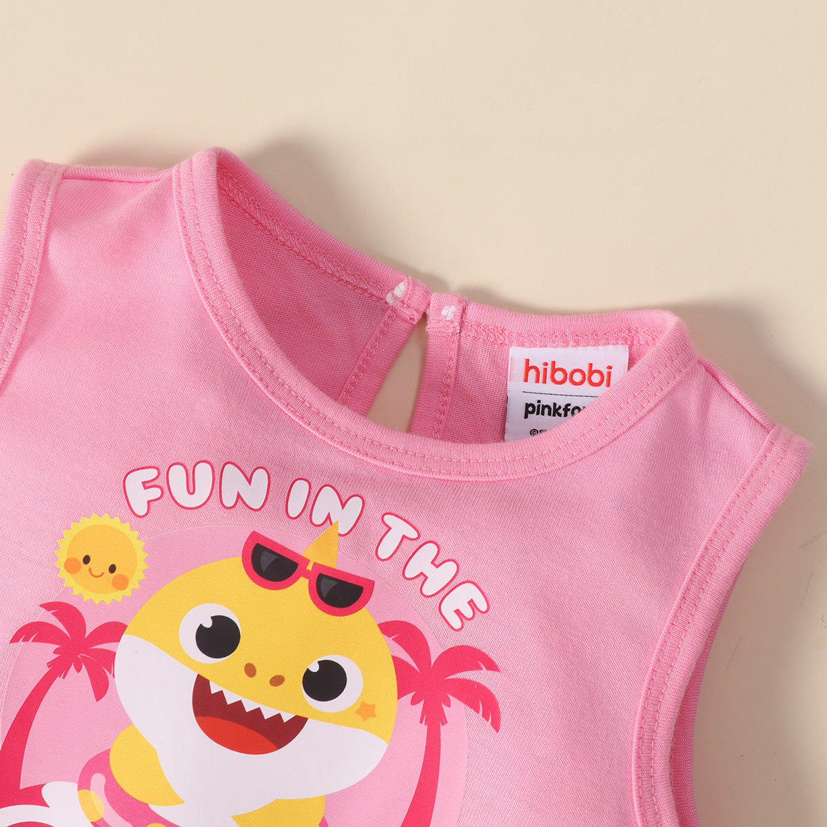 hibobi x Baby Shark Toddler Girls Cute Sweet Printing Bow Knot Decor Mesh Hem Dress Wholesale